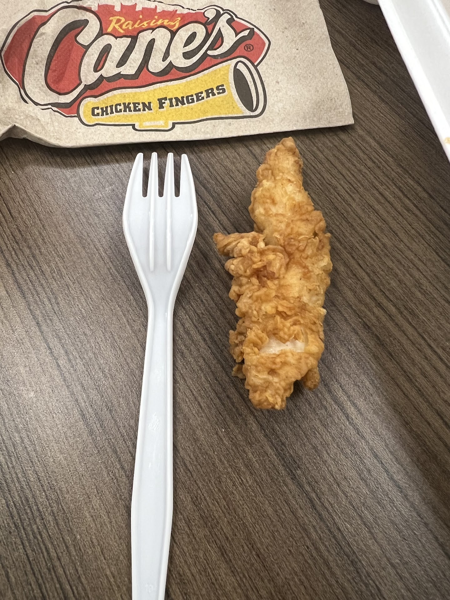 Ā Ā Ā Read moreI had heard the place was good. My youngest likes it so I was interested in trying it. Well, I've had better Cole slaw at any number of places. The fries are standard, run of the mill crinkle cut and the chicken? Well, let's just say I've had plenty of gas station Chesters chicken that was better. The canes sauce wasn't bad at all. The sweet tea? Now that was top notch tea. We did get our order for five people pretty quick though. I was impressed with that. Atmosphere? Well ladies, you have to use the same restrooms that some of us nasty men use. I'm not real sure why they have that setup but you essentially have three stalls in the whole place instead of the usual two or more that y'all normally have. All in all I might on occasion come back here with my daughter but I'm not impressed near enough to wander back...