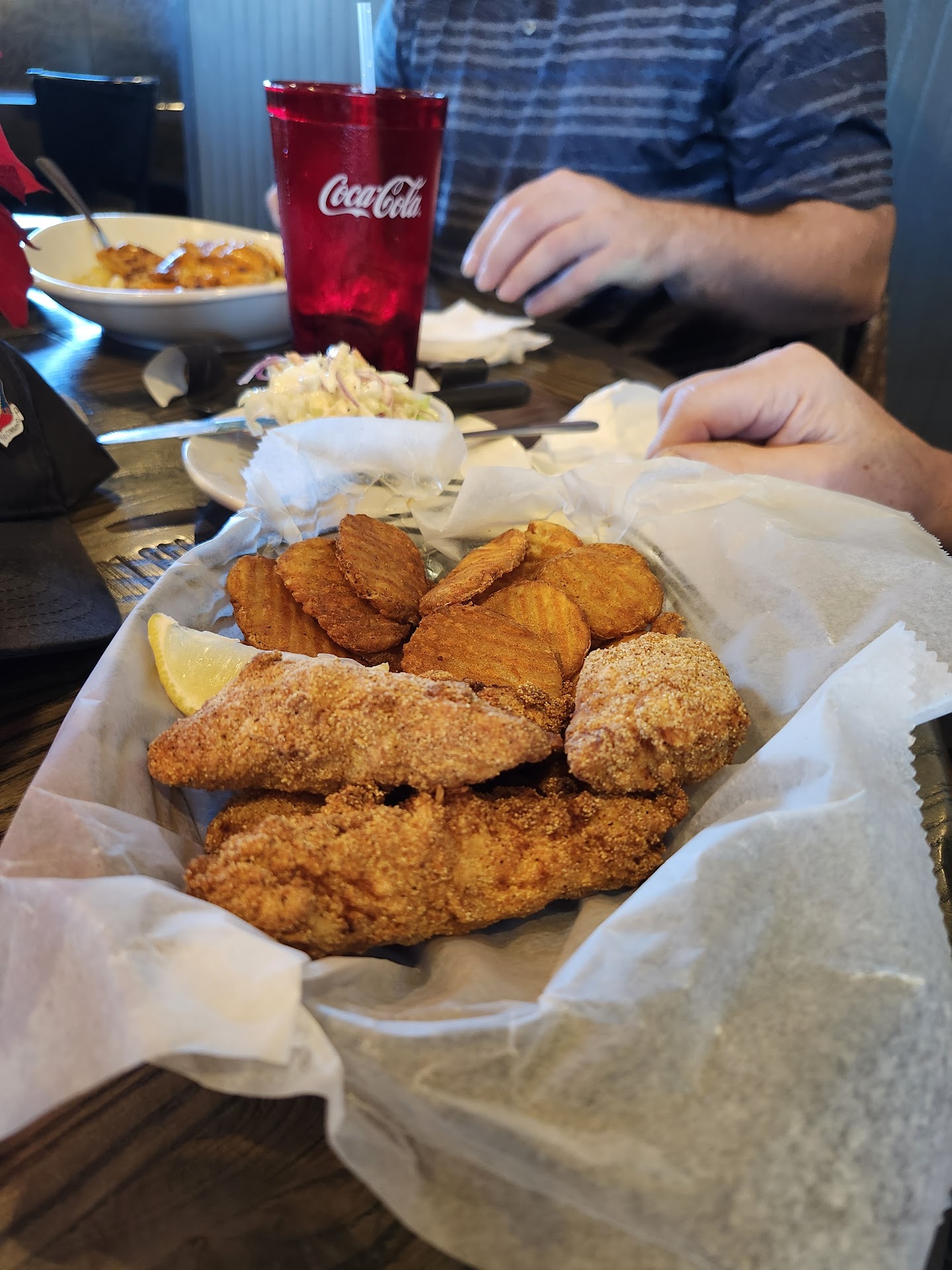 Read moreI took my sister there for her birthday. The atmosphere was good, the server was on top of everything and delightful, and was very helpful as this was our first time at this restaurant. We had two appetizers, loaded potato skins and fried pickle chips. The potato skins were perfect, not over or under cooked, and just the right amount of cheese and bacon bites. The pickles were a bit over battered but still good, the dipping sauce that came with was a bit too sweet for my taste and over took the flavor of the pickle instead of bringing that flavor out. We had sides of salad and it was delicious, had just the right amount of cheese and croutons and red pepper, and red onion, and the red onion was cut well and thin so it did not over power the taste in the salad. I do think it needed a bit of carrots and or tomatoes. We decided to try all three of the mac and cheeses. The lobster mac was creamy, and hot, however a bit too salty and the noodlesa bit mooshy. The symac was also creamy and hot, the noodles were good, a bit plane for the sauce, the grilled chicken was cooked well just a bit salty. The Cajun shrimp pasta was delicious, a bit too spicy and the shrimp a bit salty. The fried chicken was very good, crisp on the outside tender on the inside. Fish and chips, were just right. This was a alright meal, but...