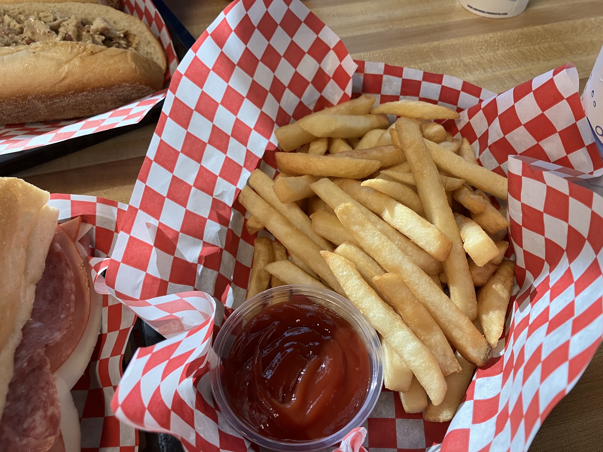 We bought two 'Good Vibes' tour passes and this was one of the establishments involved in the tour. We are "new-ish" to the area and have probably driven by this location dozens of times and never considered to stop. What a mistake! Ten West has a very nice variety of pies and other choices without being overwhelming. My friend and I opted for the thin crust. He also had a slice of the grandma pizza. Both were good but, I preferred the thin crust. It was a near perfect slice of pie with "barely there" dough and a nice amount of sauce and cheese. We also took home a meatball sub and a personal stromboli. While my friend didn't care for the meatball sub. (Reheated seemed to lose something in translation), I thought the stromboli was delicious! I'm not a fan of loads of tasteless dough with very little meat. I'm not sure what they do to their dough but it was delicious and the fillings were just right. The staff was extremely friendly, answering all our questions. I'm unsure if it was the owner singing along with the radio or the cook but it was delightful! The seating was ample for the off- hour we dined but may not be adequate for large crowds. It's nothing fancy and it shouldn't be. In general everything seemed very clean. Parking was very convenient and sufficient. As a bonus to the experience, a train went by while we were dining and the building shook! We will...