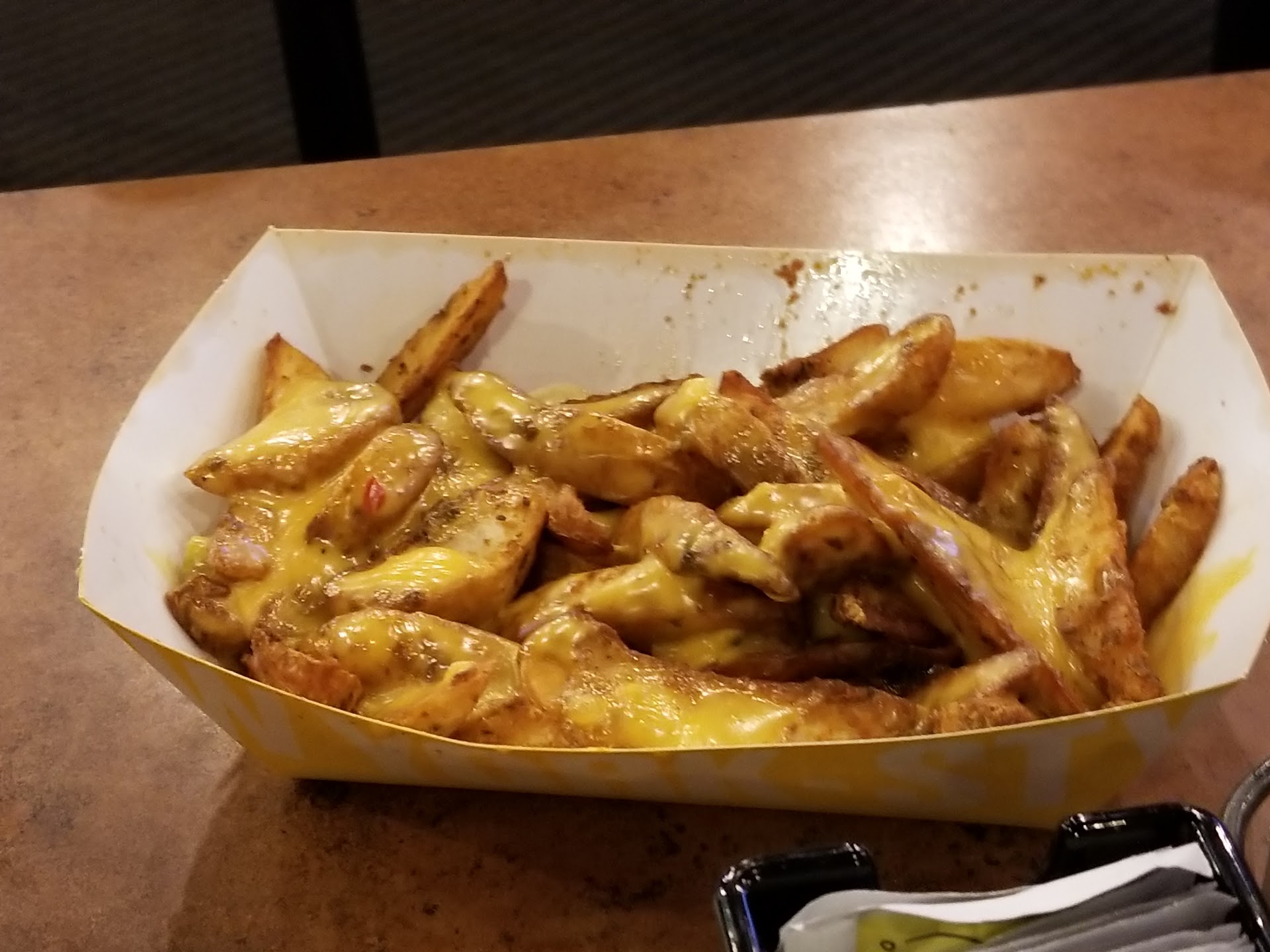 I wanted to order the 15/15 wing bundle and substitute the fries with the wedges with cheese. I am more than willing to pay extra because itâs an upgrade. I was told that there are absolutely no substitutions for the fries on the bundles. The girl taking my order didnât even attempt to try and accommodate a substitution. I also ordered kids tenders meal and then she also told me they didnât have lids for the cups and if that was ok. I said well can you put the lemonade in a bigger cup and just give me whatever much you put in a kids cup. I was placing the order to pick up so how am I gonna have a cup with no lid for the car ride home? Said she would ask her manager. So what solution do you have then? The girlâs tone went from friendly to curt when I started questioning the substitution and how was I supposed to get a drink home with no kid. I went ahead and changed my whole order to ordering the wings separate and buy the large order of wedges with cheese. The only reason we still go there is specifically for the wedges with cheese and the Wild wing sauce. Trust me, if they had those elsewhere, I would not be eating at Buffaloâs. Especially when we pay for a large order of wedges with cheese and they hardly give you any wedges and the amount of cheese they top it with is not...