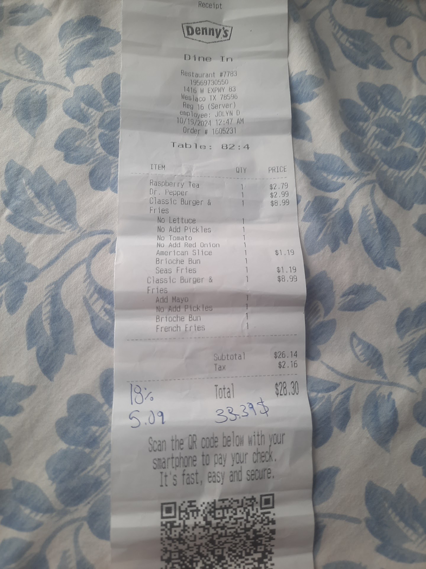 Read moreCashier never got our order to pay right Was there last night 10-19-24. Customers be careful this Dennys 1416 W. Expressway 83 weslaco tx the waiters erase the total on your check out receipt and put what ever percentage they want so customers can tip them more. Even if your just 1 or 2 dining in, then you tell the manager supposedly he's the manager Adrian Guerrero and he calls the cops just so you can pay the 18% of tip even if your just 2 persons to dine in. Of the the police are on their side cause they get free meals when they go. The waiter who changed the total is Jolyn D. Her service was bad, never got a refill her attitude was ugly, I think she was tired, brought the food late and cold. No wonder people don't want to go to that Dennys anymore. I ask Adrian Guerrero for the policy of where does it say that for 2 customers should pay 18% gratitude, he said there's no policy, then I ask for the number to call he gave me the store number, he didn't know what he was doing, he was giving us the wrong information. Those persons want more money from customers. They steal from you and the police agree with them. That's illegal of course, but I'll do something about it. Be on the lookout for Adrian Guerrero and waiter Jolyn D. They steal your money. Here's...
