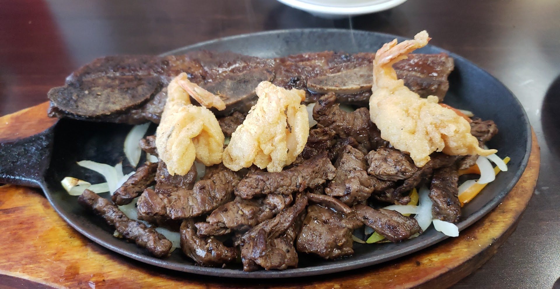 the only regret i had today is that i had never given this place a try. it will be one of my favorites from now on. i didnt post a pic because it was all gone ordered the TRIO...grilled fajita, shrimp and arrancheta rib...