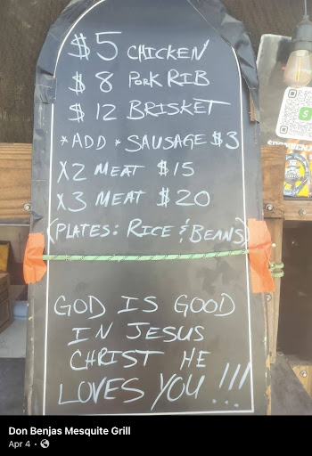 Don Benjas Mesquite Grill is a hidden treasure in Weslaco that is worth finding (BBQ trailer is parked next to the Stripes on Border Ave and Business 83). We had the Carnivore plate (Brisket, Pork Ribs, Chicken and Sausage) and it was delicious. The food had terrific flavor and is an incredible value for the price. The owner is very friendly who takes great pride in his craft. Give them a try; you...