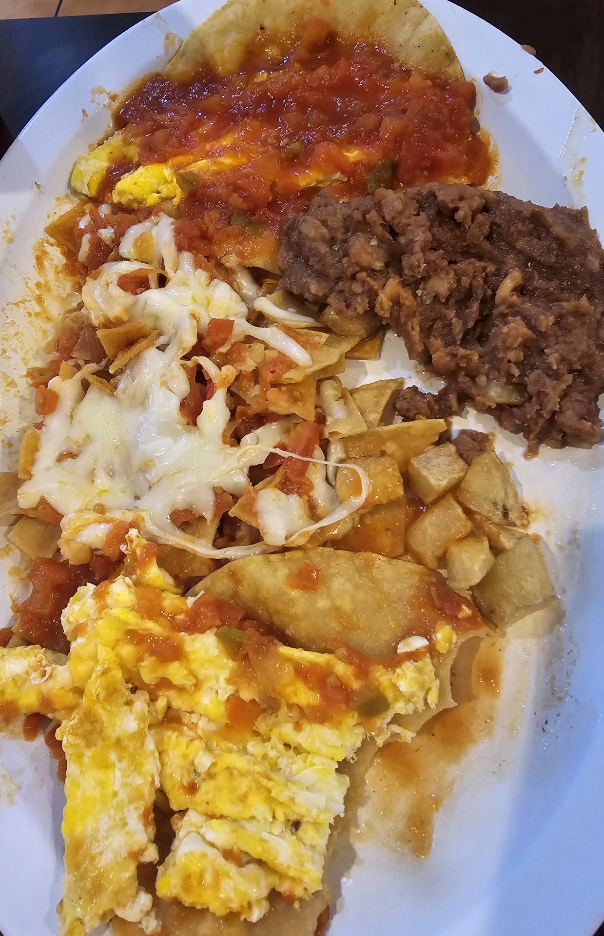 This was our first time here. Upon entering the restaurant we were immediately greeted by a cheerful waitress, who told us we could seat anywhere. She quickly came to take our drink orders and provided us with menus. We settled for an order of Chicken Guisado soft tacos on corn tortillas, Fried Shrimp plate, and the Trio plate. The Chicken tacos came with shredded lettuce & tomatoes, and a side of charro beans. The Fried Shrimp came with side of charro beans, spanish rice, french fries, a small side salad, and toast. The Trio plate came with Beef fajitas, one Beef Costilla, three fried shrimps on a bed of grilled bellpeppers and tomatoes, a side salad, charro beans, spanish rice, and flour tortillas. The soft tacos were made in homemade corn tortillas, which didnt help in keeping the tacos together. We also had to tell the server to remake that order because they made them with ground beef, not chicken. Nothing wrong on the Fried Shrimp plate. My sister said everything was delicious on that one. The Trio plate was also partially disappointing. The fajitas were good but the beef costilla lacked in flavor. Also the charro beans & rice were luke warm. I think the only thing that was really consistent was the good service...