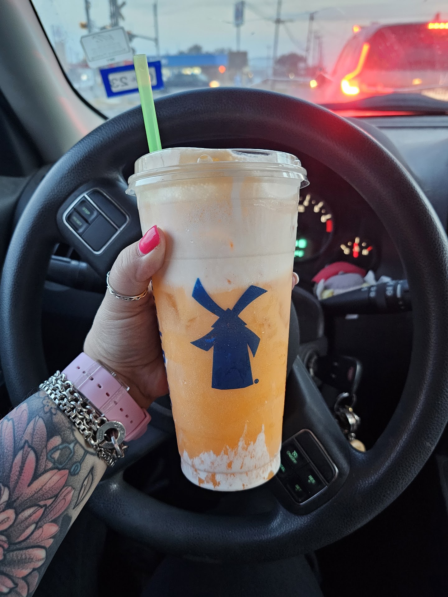 Read moreI don’t usually write reviews, but one of the broristas changed my life… After i ordered through the drive thru and pulled up to the side, my 1997 toyota previa slipped on a banana peel left on the road. My 7 children flew out of the car door because i’m using taped boxes of twisted tea to cover the door. But all of a sudden… i see a figure in the sky zip lining toward me. I see jackie on a zip line (attached from the top of the dutch bros) and in slow motion… like magic… jackie catches all of my kids and grabs my car to stop it from fully flipping. My 67 year old baby Fester also bit jackie (he has rabies 🥺) but jackie took it like a champ and gave him rabies shots and jackie was instantly cured. On top of everything, jackie provided me with quick service giving all of my kids and I our correct orders. Jackie provided me with the most amazing dutch...