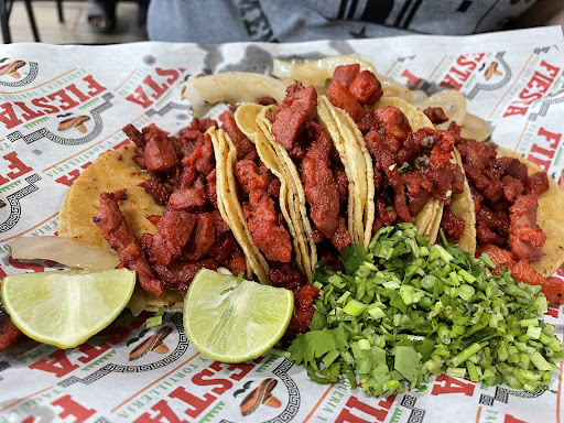 Read moreI LOVE THE TACOS AT FIESTA TAQUERIA. THE TACO COMBO IS EITHER 4 CORN TORTILLA TACOS OR I BELIEVE 3 FLOUR TACOS.THE MEATS YOU ORDER FOR YOUR TACOS IS TRIPA, FAJITA OR TROMPO.YOU CAN ORDER YOUR TACOS WITH OR WITHOUT GRILLED ONIONS AND WITH OR WITHOUT CHOPPED CILANTRO ,1 BAKED POTATO WITH BUTTER, CHESSE, A CUP OF FRIJOLES RANCHEROS, A 12OZ CANNED SODA . THEY ALSO HAVE 3 FOUNTAIN DRINKS WHICH INCLUDE LEMONADE OH NO! I FORGOT THE OTHER 2 FOUNTAIN DRINK FLAVORS.YOU CAN ALSO PICK A MEXICAN SODA. FIESTA TAQUERIA ALSO OTHER ITEMS ON THEIR MENU LIKE ENCHILADAS THAT ARE SERVED WITH RICE AND BEANS,CARNE GUISADA IS ANOTHER ITEM ON THEIR MENU. AND SEVERAL OTHER MAIN DISHES.OH! I CANT FORGET ALL THE DISHES INCLUDE CHIPS AND PICO DE GALLO. FIESTA TAQUERIA ON SUNDAYS OFFERS THE BEST TASTING BARBACOA IN TOWN. I FREQUENT FIESTA TAQUERIA BECAUSE THEIR FOOD IS...