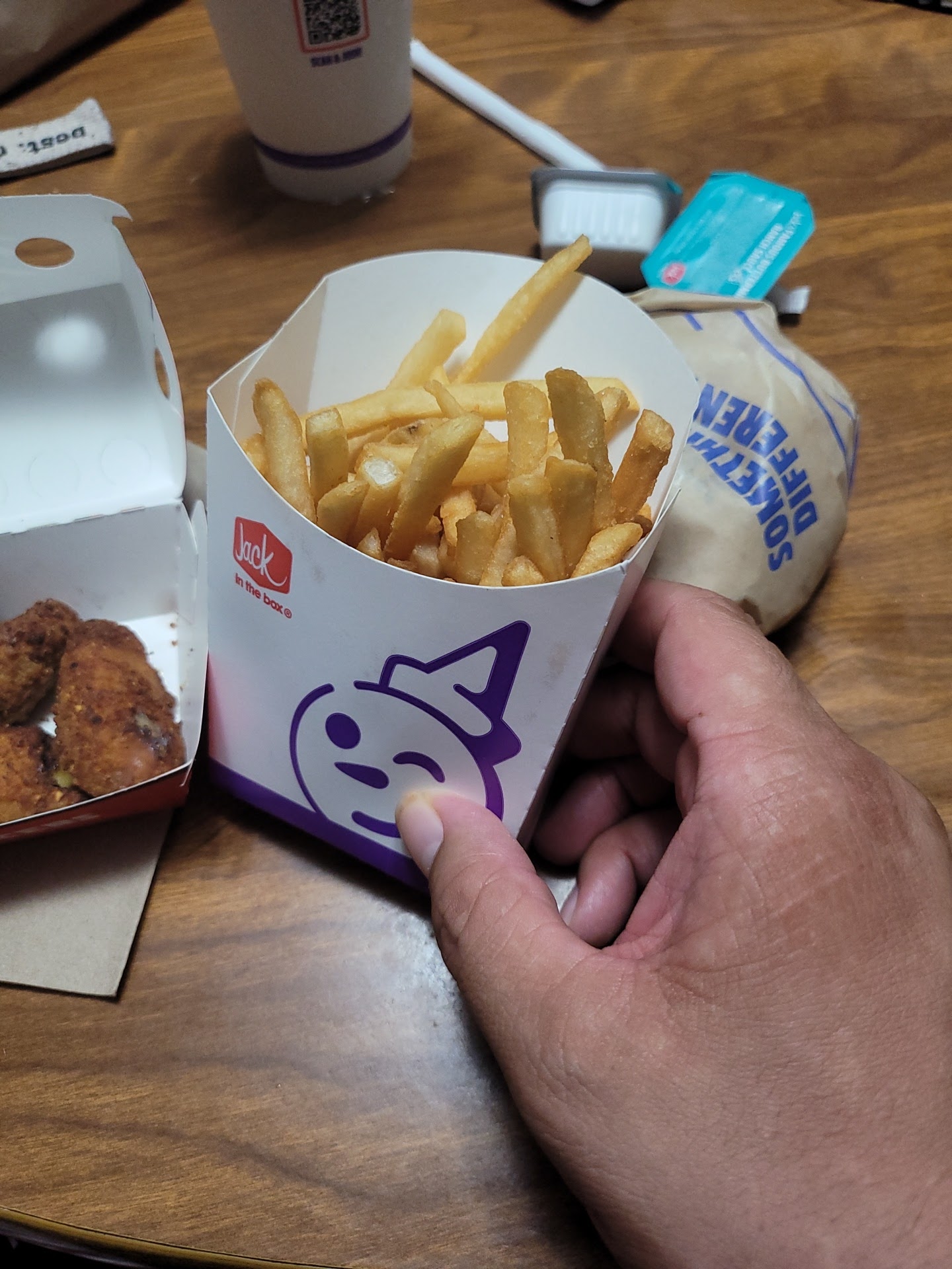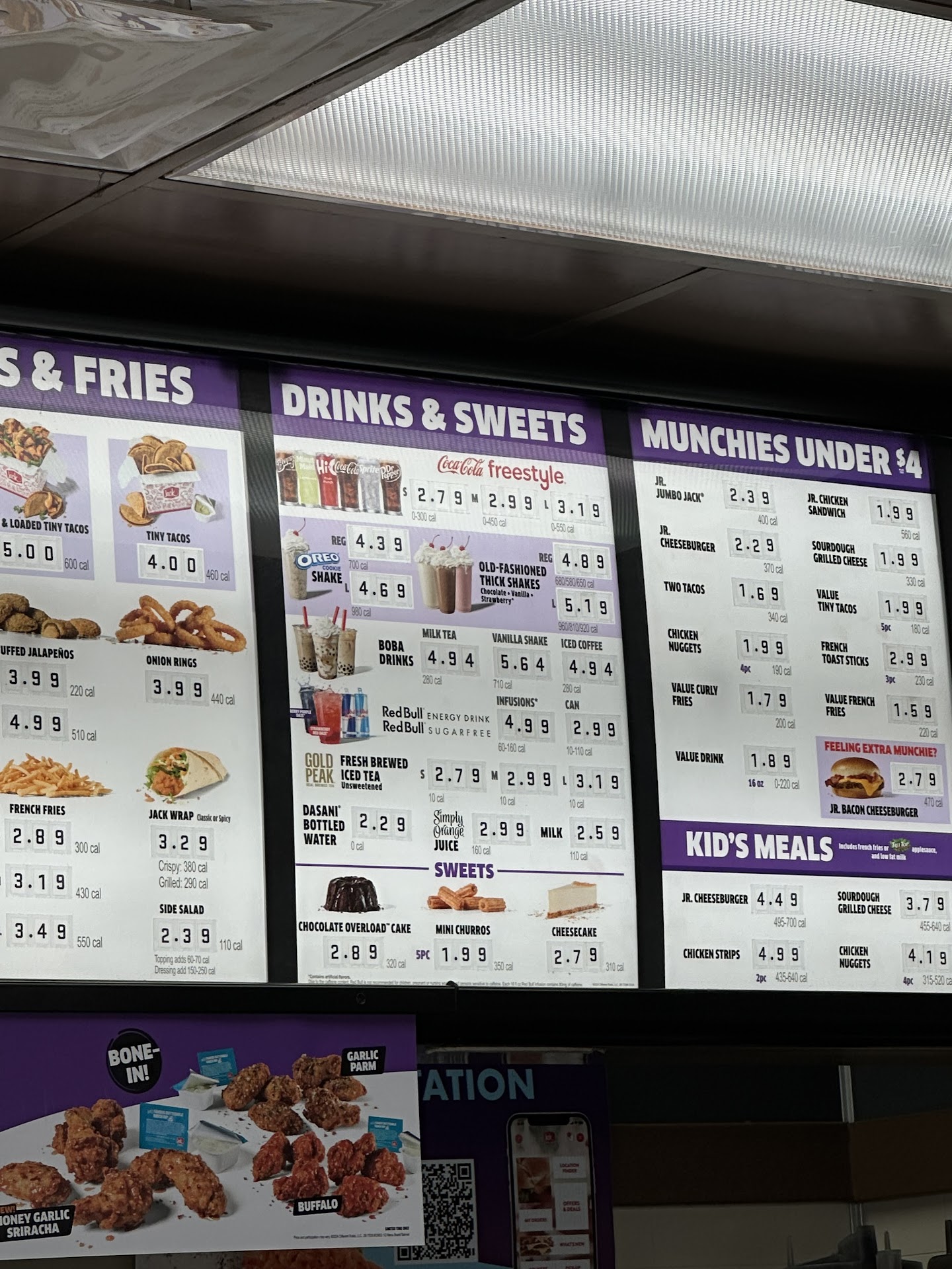 Read moreWHAT HAS HAPPENED TO THIS JACK IN THE BOX!!! One of my favorite things to eat at Jack in the box is the stuffed jalapeños.. so I order them a lot or should I say used to. They used to come out fresh nice brown color crunchy now they are cold, burned, soggy.. horrible!!!! And you seems like the employees don’t know what Fresh curly fries means. I got the opposite of that cold, had a horrible taste to them like old very old.. The burgers have gone downhill!!!! What is going on here!!! Management really needs to change this ASAP!! Be on top of your employees!!!! We the customers pay to enjoy a good fresh hot meal not a cold soggy old meal!!!!! This needs to be looked up by higher...
