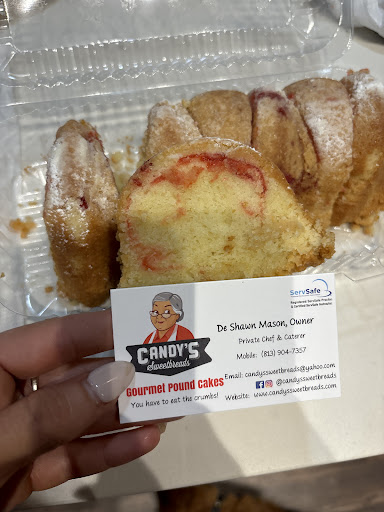 There is 0 exaggeration when I say this is the best cake I have ever had in my entire life. I have an unhealthy addiction to the raspberry swirl pound cake and cannot wait to find the Candy's stand at all the tampa farmers markets. The owners of this local business are kind and passionate about what they do, and you can taste it in the quality of their product. Do not pass up Candy's when you see them at the market, there are lots of other breads/cake vendors but they do not come...