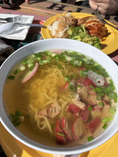 We got the Saimin noodles, Sunshine Chicken, and a Hawaiian Sun - Strawberry Lilikoi. The noodles were delicious, and the sunshine chicken with the Laoganma Spicy Chili Crisp was amazing. They even came out and offered us some shaved ice afterwards which was so kind. Worth the drive, worth the money, and we will be going back again soon.