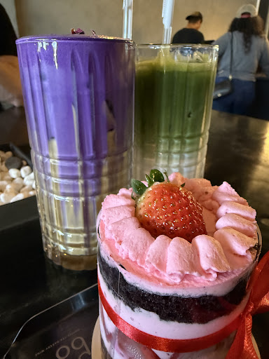 First of all, it's such a warm and inviting atmosphere. I honestly didn't know what to expect when I walked in. The pictures online don't really do it justice. You just have to walk in and see it for yourself. It's a really nice seating and lounging arrangement. It's just a more modern coffee shop vibe with specialty drinks that are so unique. There's also more on the menu than what you see. Just be sure to look at the small chalk board sign to the left of where you place the order. It lists all the fresh bakery items offered that day. I couldn't pass up the coconut cake as well as their signature Coconut Matcha iced tea. There appears to be a rewards program when you sign up during the check out process. That will be so useful for future purchases.
