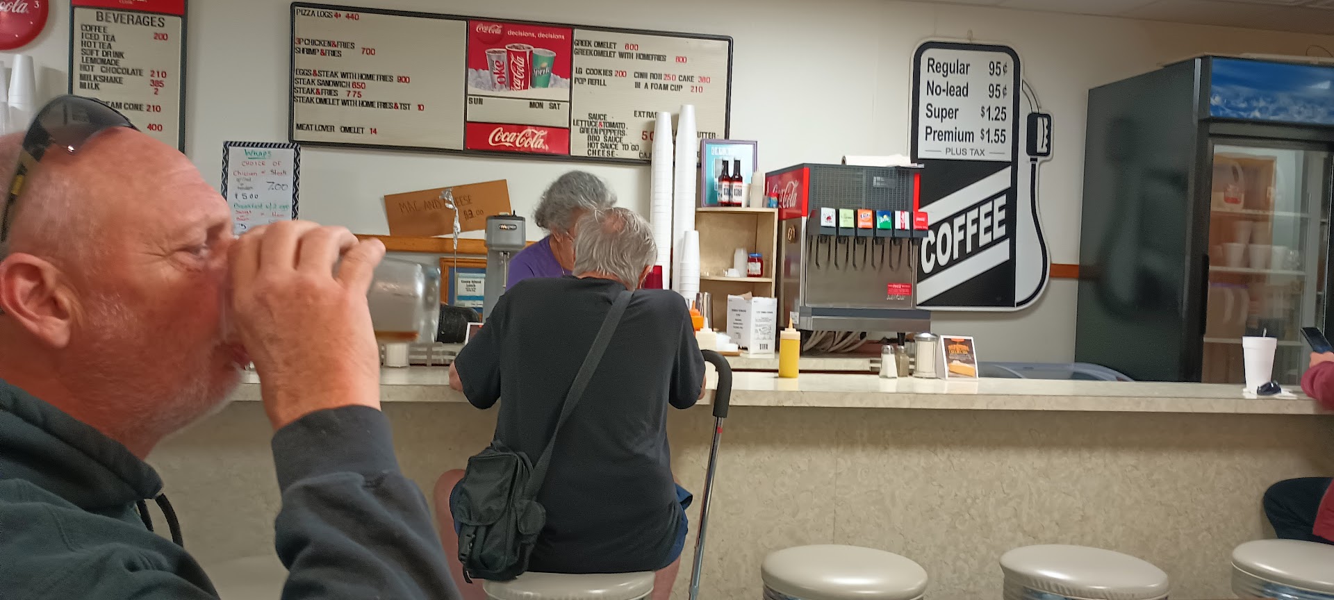Read moreThis place is a treasure it is wheelchair Accesible clean and well lit , with excellent reasonably priced delicious food . The entrance has “man trap “ double doors , the staff is always happy to help with doors and moving tables around if needed for your chair . It does it decent business for its size and location and has a selection of colorful local regulars .it has both counter and table seating, everytime I go here I have a good time acgood meal and crazy good service ,so if you want anything from coffee to a full meal they are ready to meet your need budget and appetite . You can also frequently see some nice hot rods in the...