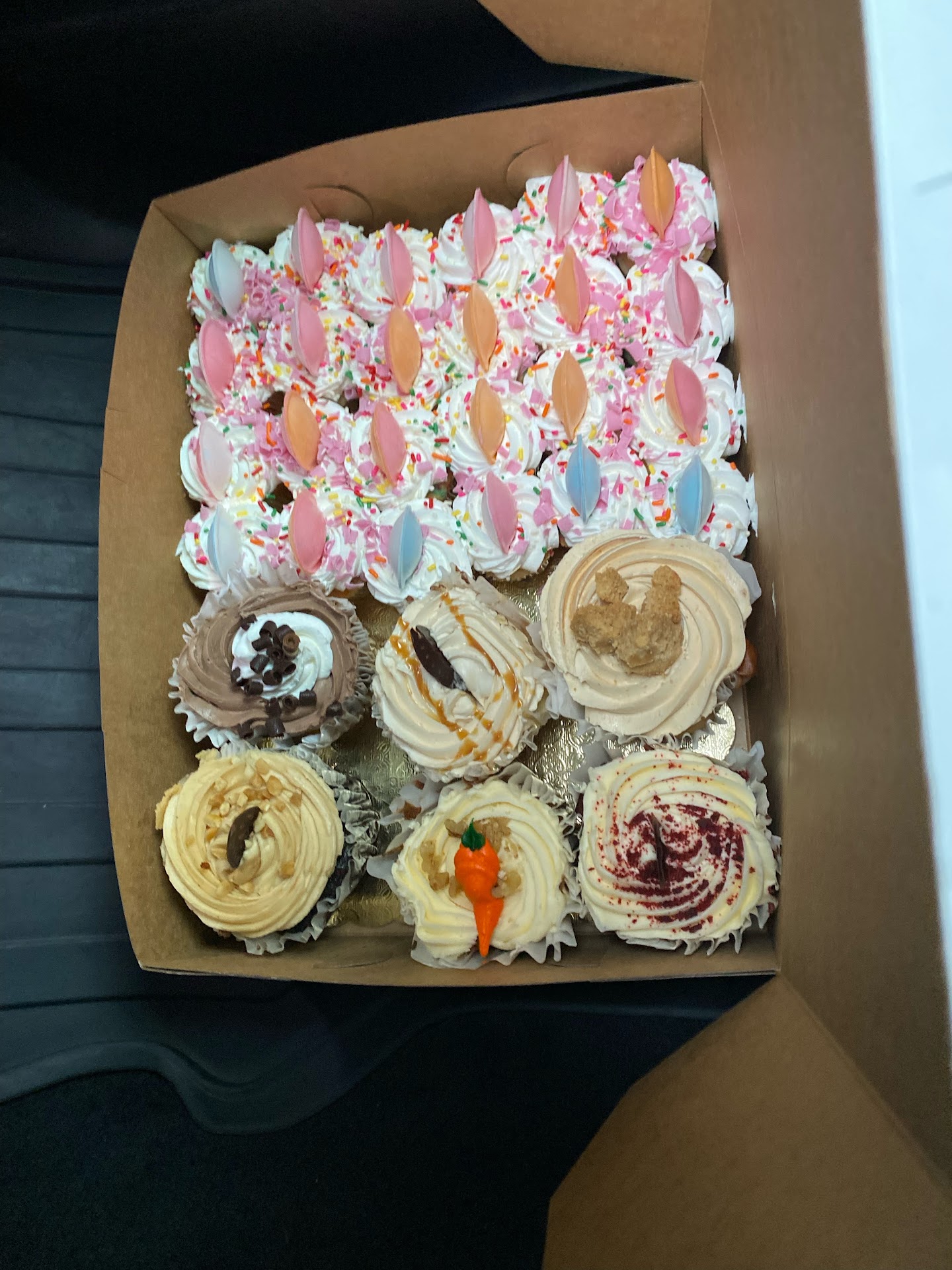 I ordered last week approx 65.00 worth of cupcakes for today to be ready for a 7am pick up. 1. Order not ready for pick up 2. Look NOTHING. Like your advertisement - no care at all!! 3. You shoved them all Together into a box to be squished unbelievable 4 in didn’t get the flavors I I had ordered for the large 6 cupcakes either