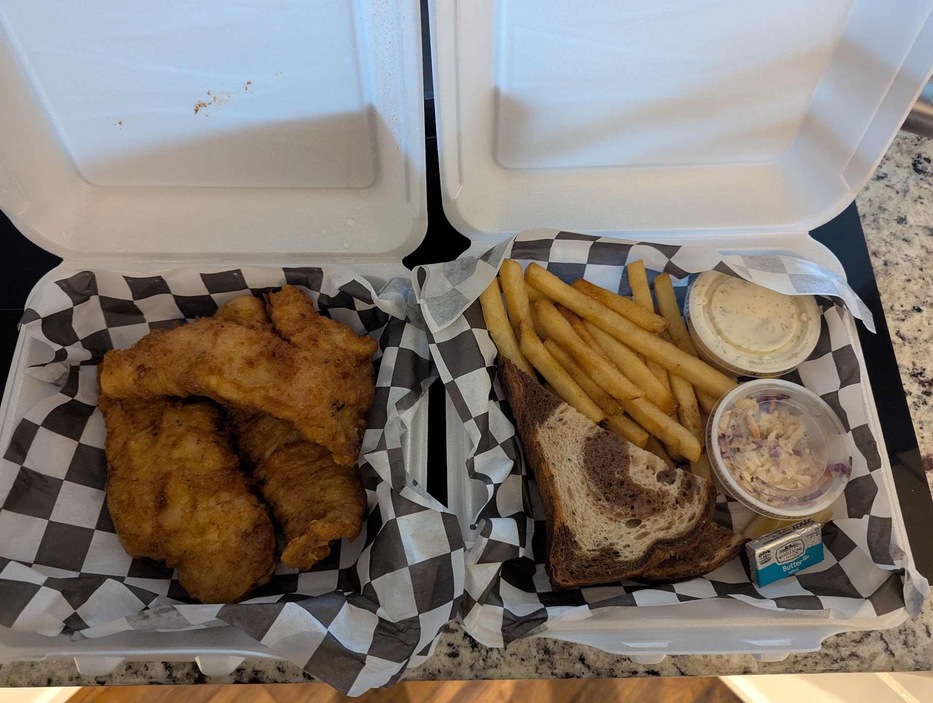 Food was delicious but a little bit too greasy for us. The tartar sauce was different. I would suggest maybe putting a tiny bit of macintosh apple in there. The coleslaw was not sweet what I'm used to. It was very sour so I don't know if it's supposed to taste like that or if it was old. My son wanted to try the chicken tenders but they don't serve them on the same days as fish fries. My son ended up getting the last burger. They were all out after that. Not sure if this happens often but I felt bad for the people that came in after us that left because they were there for burgers. Service was a little slow. The atmosphere was a little too dark for us. Overall I give this a four star.