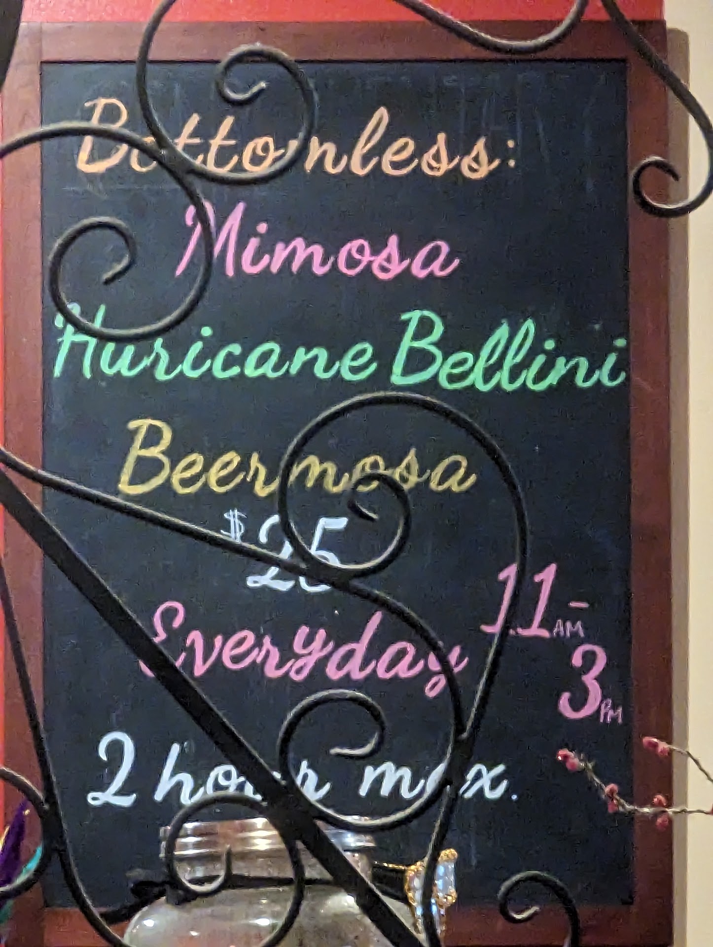 Then we got seated. I ordered a Sazerac and my wife ordered a Hurricane. Both drinks were above average. However, had to ask multiple times for glasses of water. The waitress just didn’t seem like she was into us all that much... she was polite though.
