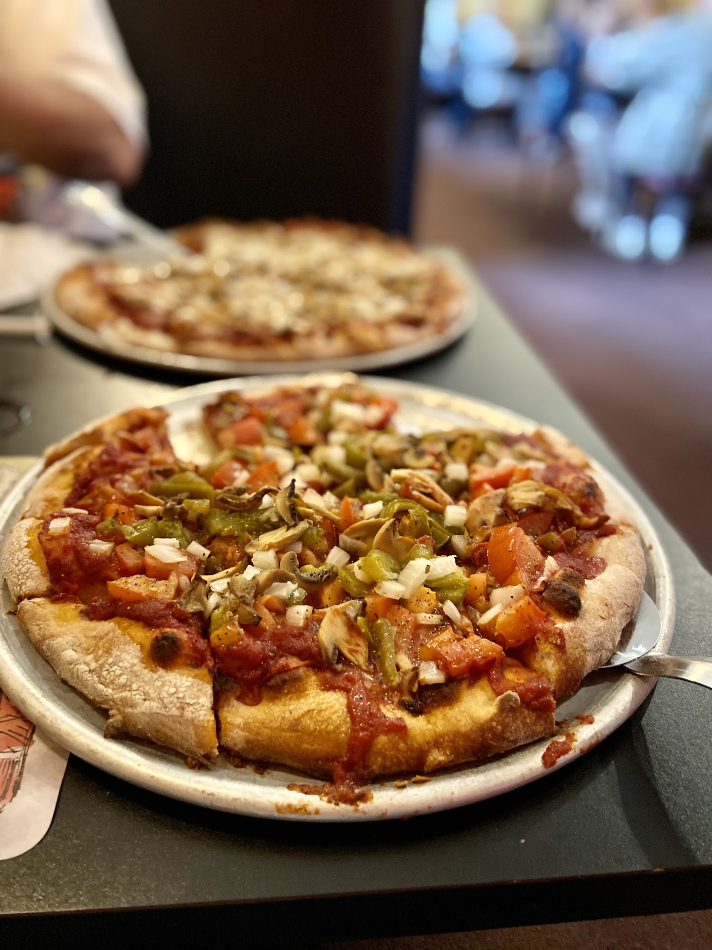 I do not have pictures from my last two visits. I typically add artichoke and large tomato slices to my pizza now. However, I did save previous photos to show how amazing the Vegan pizza is along with one of my husbands.