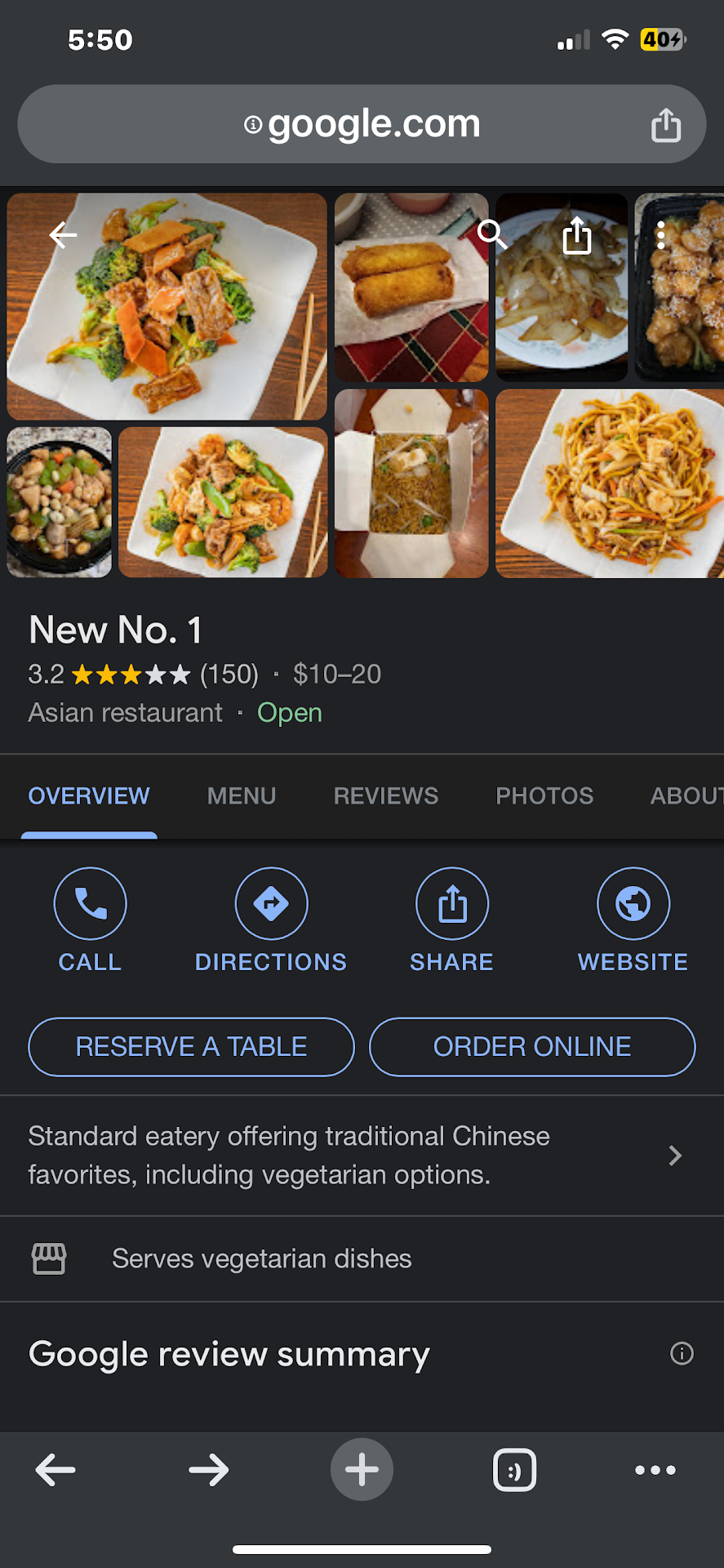False Advertising!! If you click on go to website you can see the menu and order from there. That is what I did. I ordered a Dinner Special, beef chop suey. (It very clearly states at the top of the Dinner Specials section: Served from 2:00 PM to 10:00 PM. Served with Chicken Fried Rice and Choice of: 1 Egg Roll, Can Soda or 2 Crab meat Rangoon
