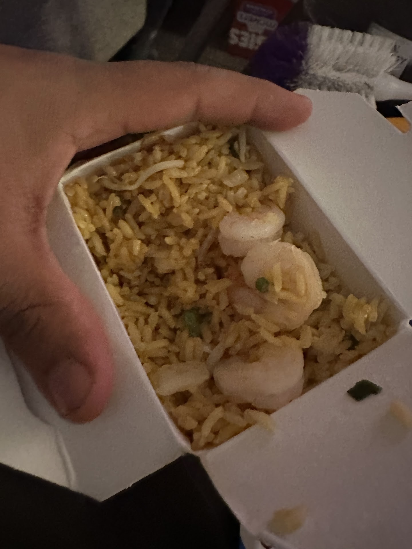 The sesame chicken was no better. It had the same hard texture as the General Tso’s chicken, with the only difference being the sesame seeds sprinkled on top- The sauce that was used on the General Tso’s chicken was the same sauce that was used for the sesame. The egg rolls tasted stale, as they are pre-rolled, sitting in a cooler for days before being fried to order (I seen this upon pickup) and we could tell immediately after we bit into them. The veggie fried rice was just as bad—hard, with undercooked, crunchy vegetables.