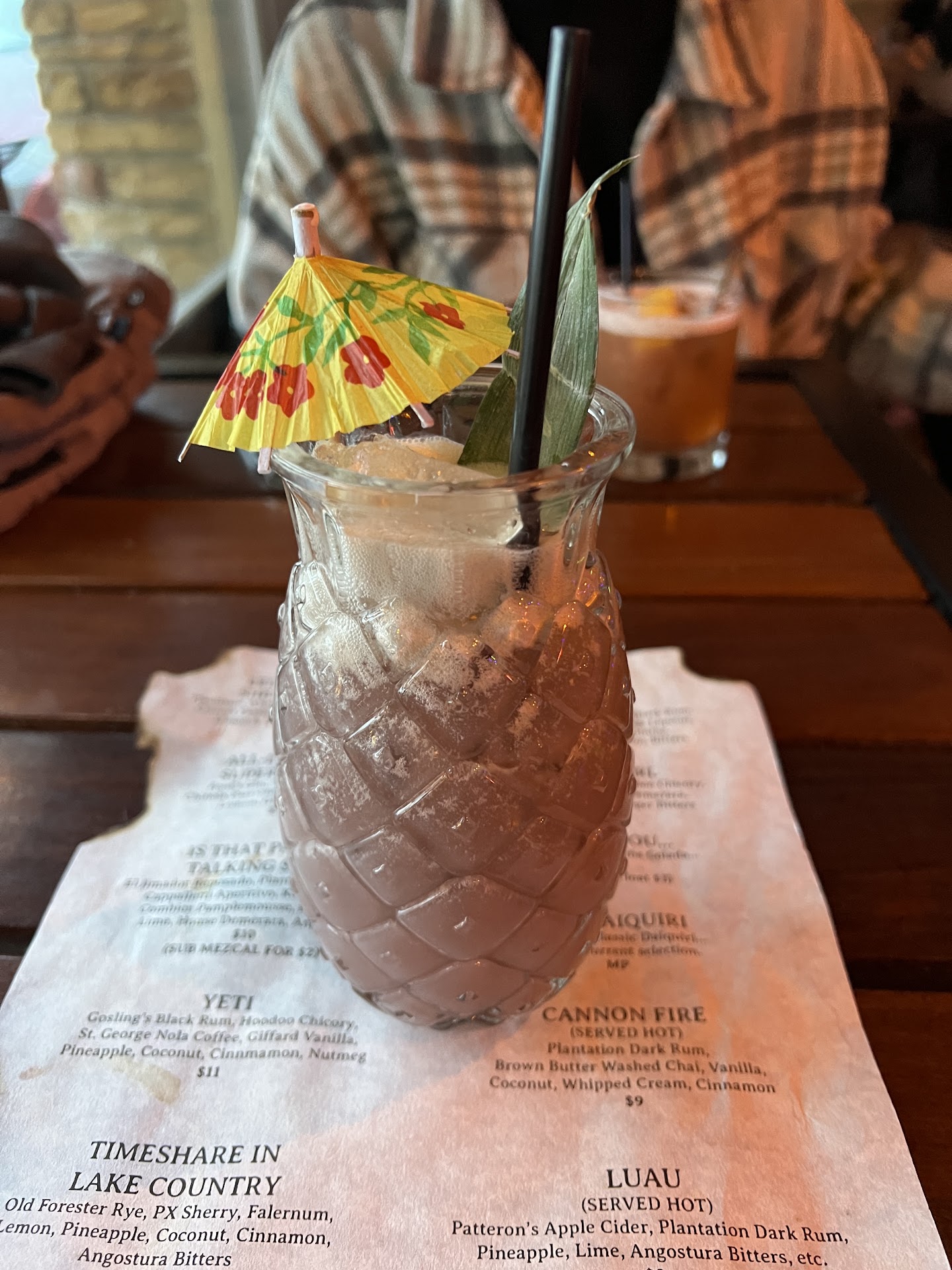 Love this place, best bar for craft cocktails on the west side of milwaukee/suburbs. Been here so many times! Food wise they just have a few simple apps like a giant pretzel, or a cheese platter which are all fine, they dont have a full menu but you can bring food if you want. Drink wise they have a very nice selection of craft beers and a changing list of craft cocktails based on the season. There are unique flavors, and something for everyone from sweet to dry and everything between, all well balanced. I only once recieved a mixed drink where one flavor over powered, on the contrary they usually are mixed flavors that blend well and help enhance the other flavors. The cocktail menu changes every season so its hard to nail down 1 drink. The establishment is fun, in on old fire station so there isnt much indoor seating but lots outside & a gas fire...