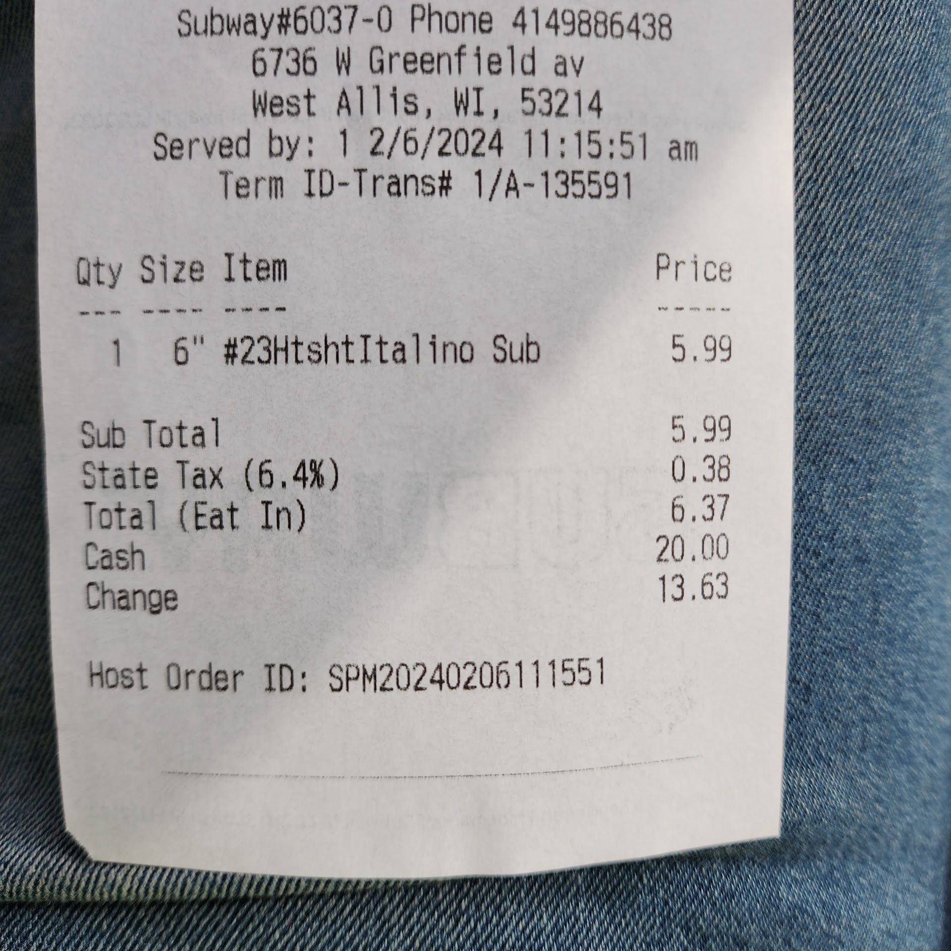 Read moreFURIOUS!!!! DONT EVER COME HERE GUYS!!!! I came to this location off of 67th and Greenfield Avenue in West Allis super hungry, and ready to eat a sub! I had cold groceries in the car that need to be put away soon so I had chose subway since it was the closest thing near buy. Once I arrived at the door, I noticed it was locked.! I came there around 5pm on a Saturday..The big neon sign outside is lit up OPEN! There’s a full schedule stated that their hours of operation was open! You can see through the clear glass that there is employees in there. One of the employees looked right at me and then just looked away while he was just enjoying food in front of me as I was knocking on the door. He just straight up Ignored me!! There is even a customer in there at one of the tables! The customer just shrugged his shoulders. Not once did any employee come to the door and apologize or state that they were closed or anything!!! There was no sign or note that stated they were closed.. only a big lit up sign that they were open!! This Subway is Unbelievable and they do not care about their Customers!!! I have a video to prove all of this but google doesn’t have an option to...