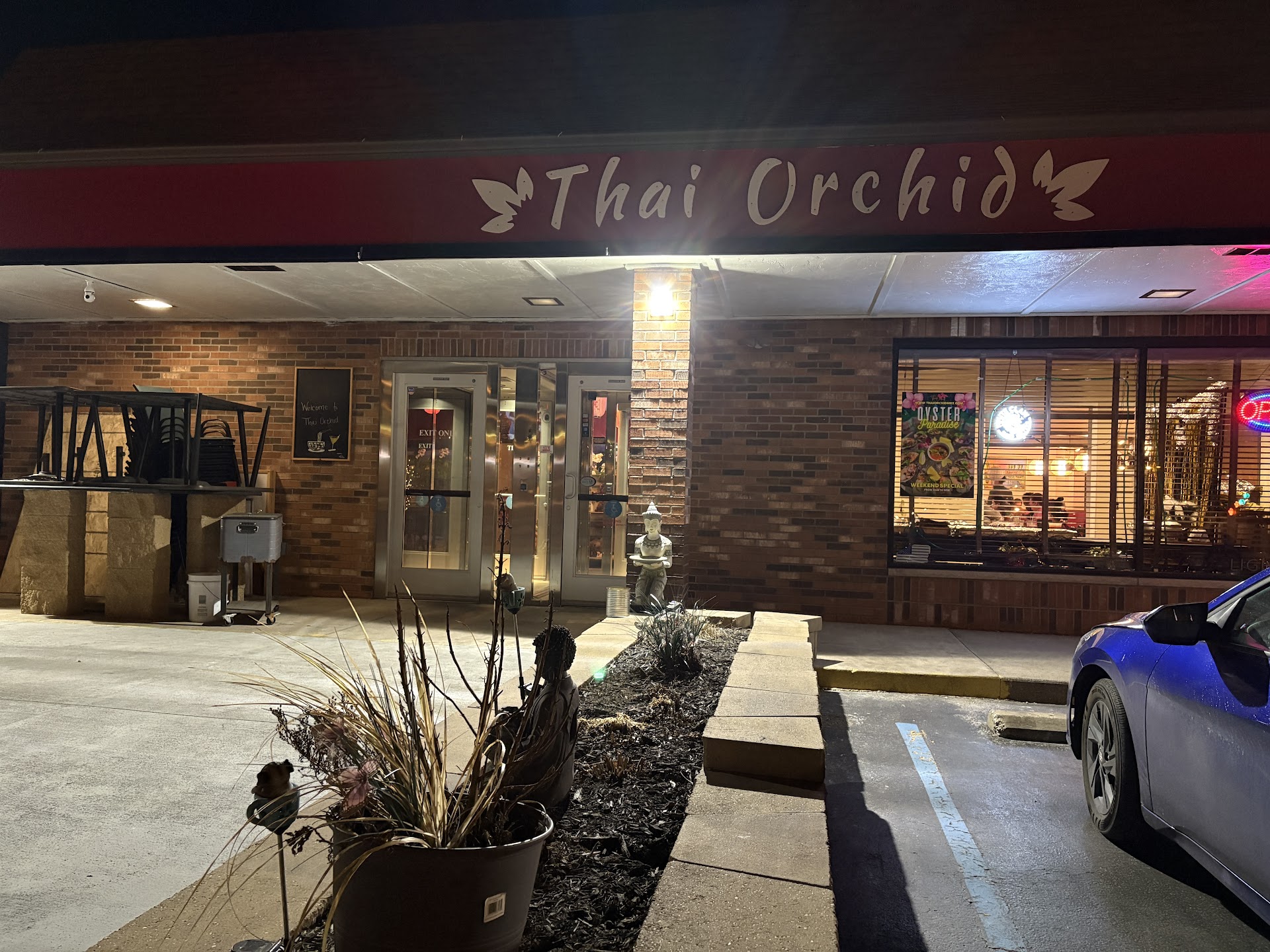 Our favorite Thai restaurant was closed this evening (Vientiane Noodle Shop) so we looked for a Thai place we hadn't been to before and found Thai Orchid. Nice looking place, had a small somewhat private room that was reserved for a party, a karaoke section, a bar, and a hallway with what looked like digital video games. I ordered Red Curry and my boyfriend had Fried Rice, both to-go. We liked our dishes, they were fine. Mine was a bit on the sweet side, so if you like that flavoring, you'll be ok with Red Curry. I like a more savory curry, so I'd give this 3 stars. I did like that they noted "Fish Sauce" in the Papaya Salad on the menu, so I avoided that (because I'm vegan). The Fried Rice dish was also ok. We ordered ahead and the food was ready for pickup when we arrived. Parking was not a problem at 6 p.m. on a weeknight, the lot was not full. My search for authentic Haw Mok Gai (Tofu) continues and the closest thing I've found to it is at Vientiane Noodle Shop, the dish called Kang Pet. If anyone knows where this dish is located, please let me know. It used to be at Bangkok Orchid and I read in another review here that Thai Orchid's chef is rumored to have been trained by Thai Joe or his wife, owners of Bangkok Orchid. If that's so, I'll contact them and see if they can make Haw Mok Gai, with Tofu instead. I miss that...