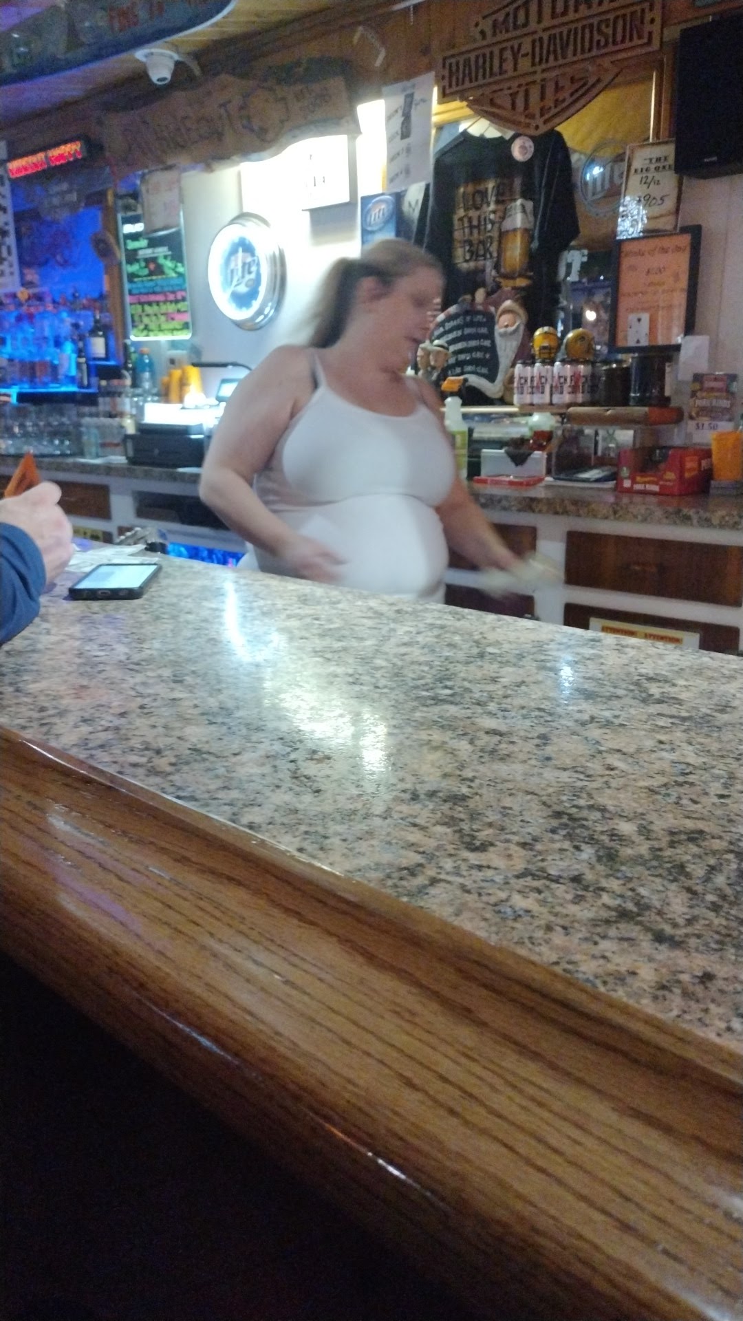 First time here. Called ahead to see if they were serving food. The bartender said they still had pizza available. When I entered, there were 3 patrons. The bartender gave me the dirtiest look, said "i need to see your ID" and told me she didn't want to make a pizza cuz she wants to get out soon. Mind you i called ahead and the hours state that they close at 2AM. Since when does a frozen pizza take 2 hours to cook? Nastiest bartender I've encountered in WI so far.... Don't know her name, but that's her in all...
