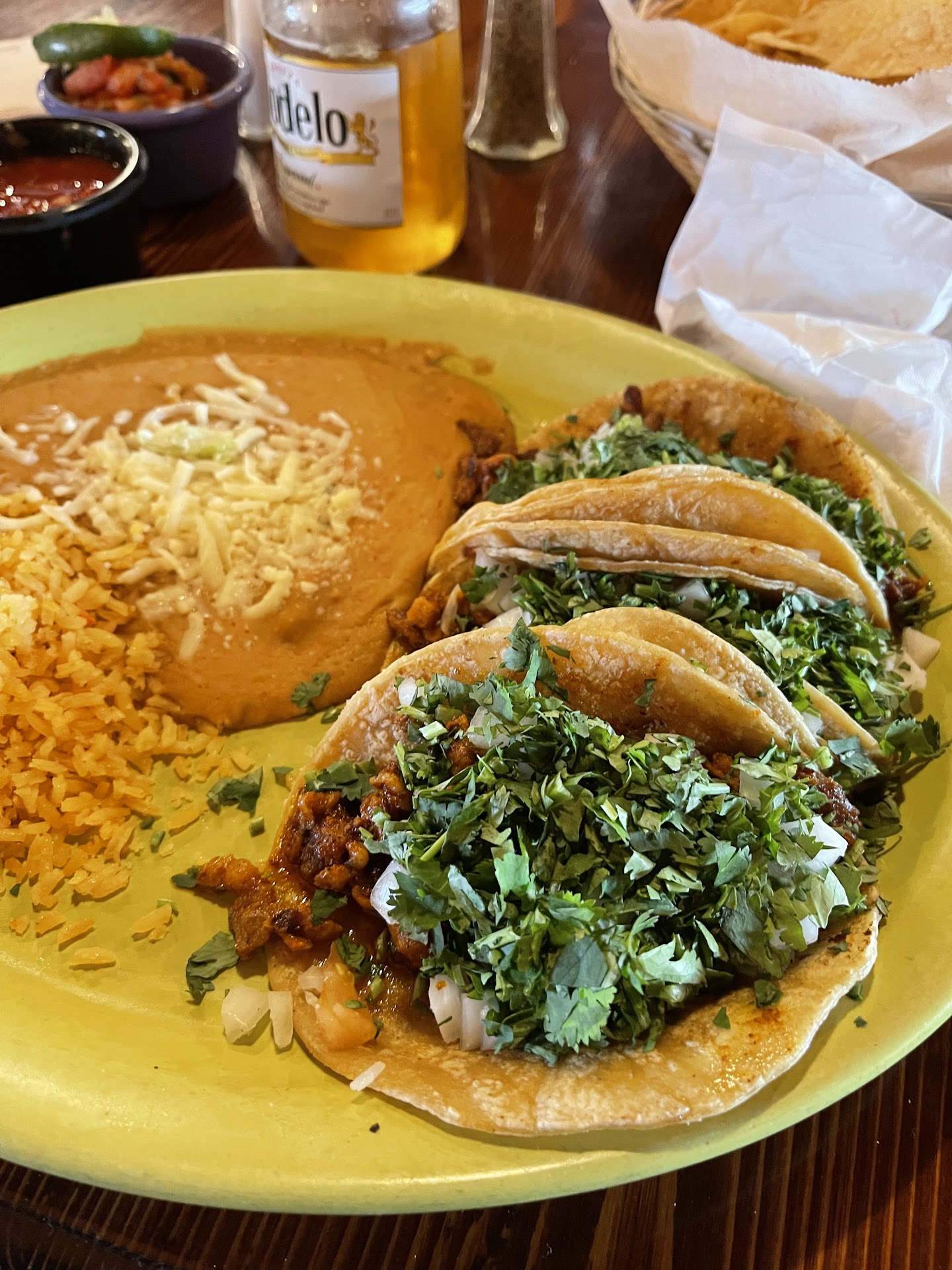 Read moreOrdered drinks and they mistakingly brought a Corona instead of Corona-rita. They take the Corona away and bring the Corona-rita. Ordered our meals and 10 minutes later they come back saying no al pastor. Waitress asks what should replace it but doesn't bring a menu. Gets menu and we say chiles rellenos instead.