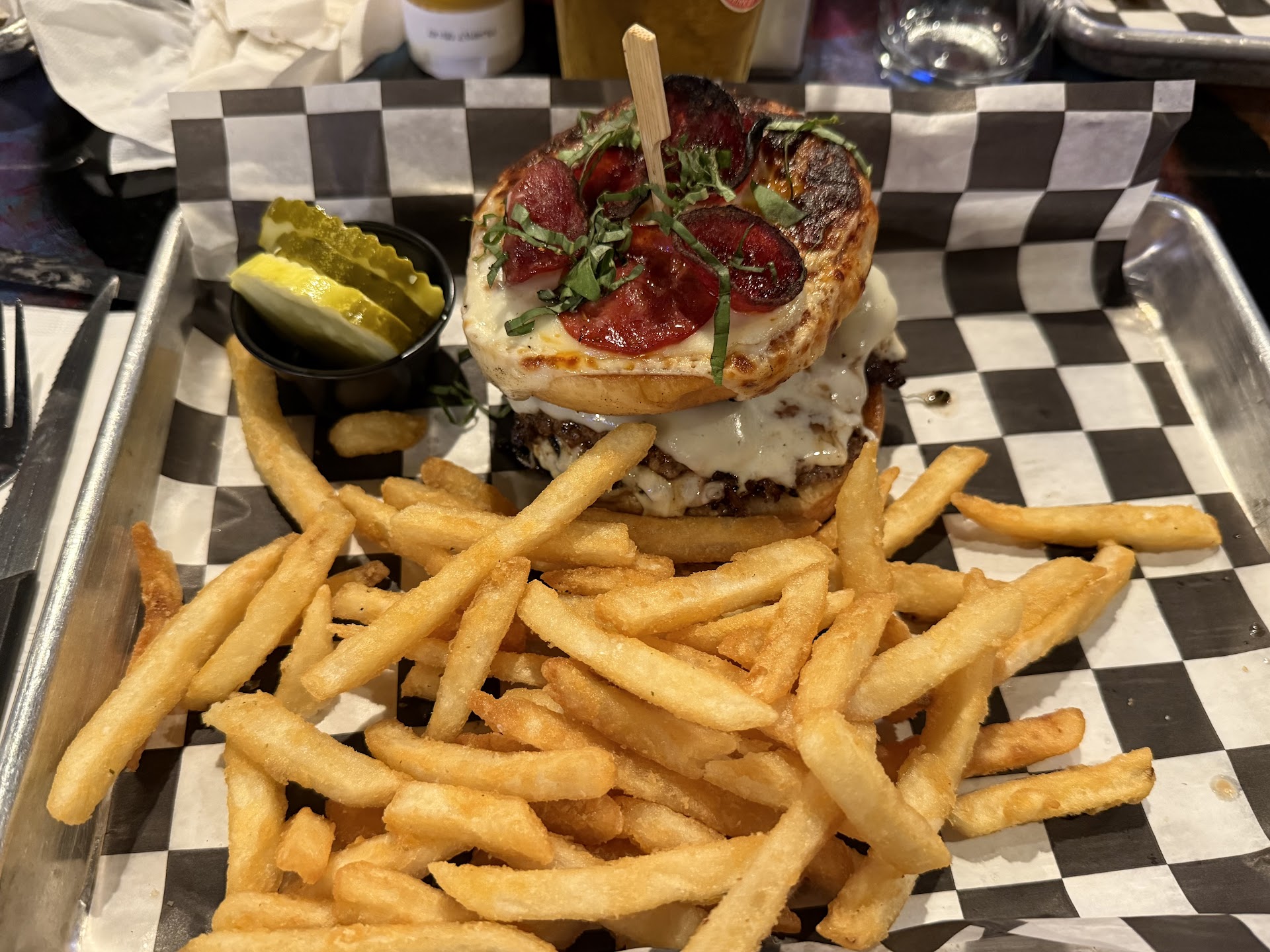 A few notes about the menu. It doesn’t list the burger size, and the server didn’t know. I know they’re smash burgers, but am I getting 1/3lb, 1/2lb, 1/4lb? For 15-17 bucks for a burger and fries (which imo is pretty pricey for smash burgers) I’d like to know how much meat I’m paying for. Also, if you have a special sauce on the menu, it would be wise to describe what the sauce is. I’m speaking about the Atari sauce. Maybe I’m being nitpicky, but the menu item names and some of the words come off as trying too hard to be unique. “Carmo onions” c’mon now.
