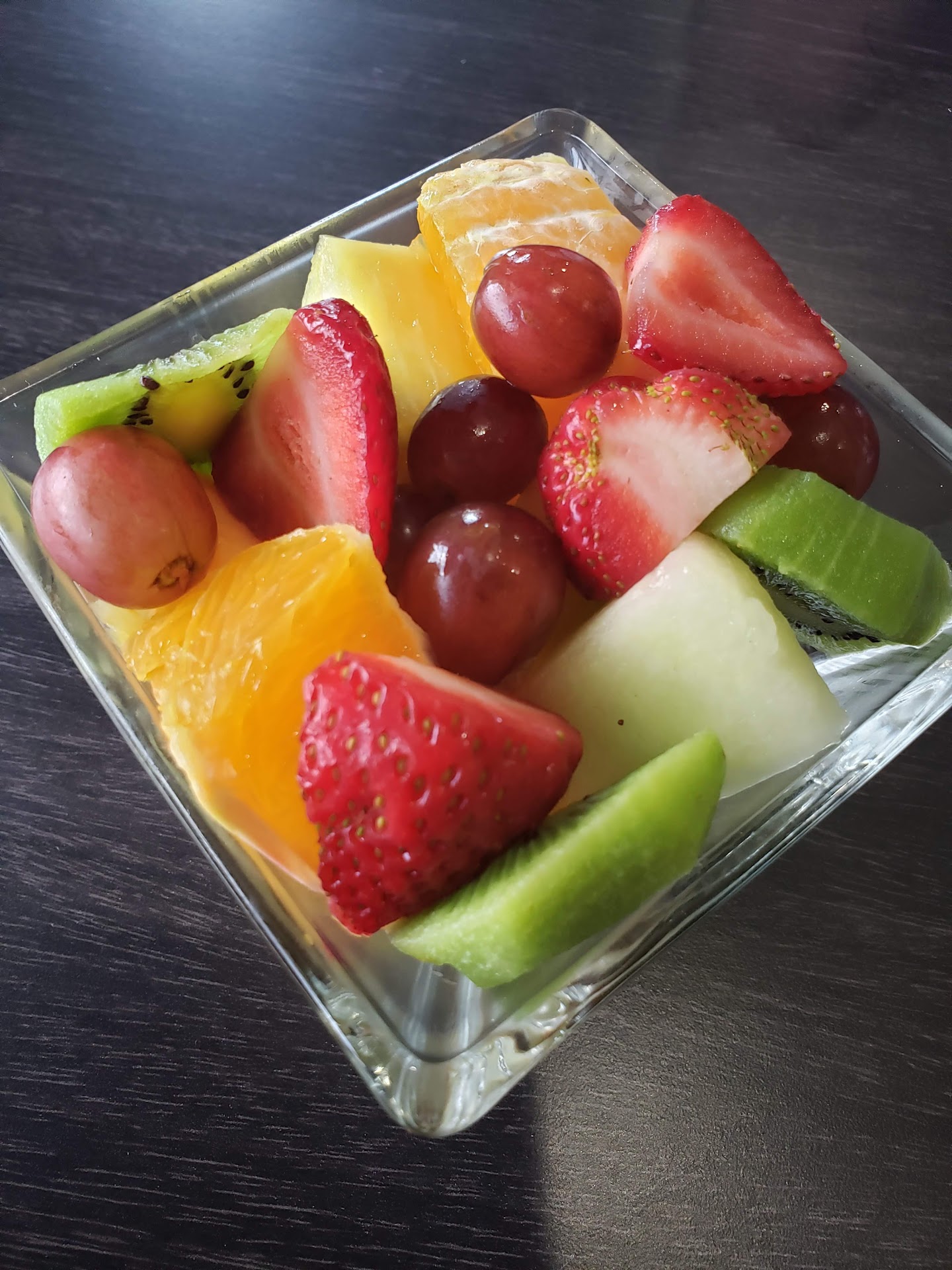 Pros: Both skillets were very good, with our favorite being the Greek because it was unique and flavorful. The pancake (sides) were light and fluffy. The side fresh fruit was a good portion and variety of fruit, and the little brunchers french toast was a huge portion! Honestly, large/satisfying portions all around.