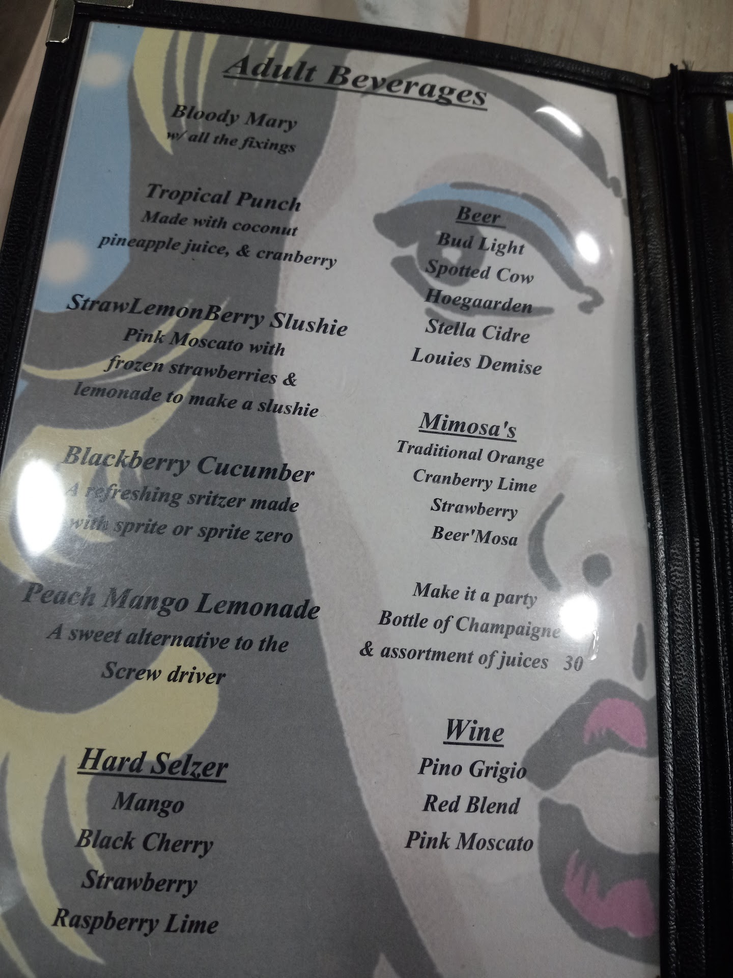 They serve alcohol, beer, wine, spritzer and even champagne! So many other fresh refreshing drinks to choose from. I had Peach Mango Lemonade, a sweet alternative to a a screwdriver.