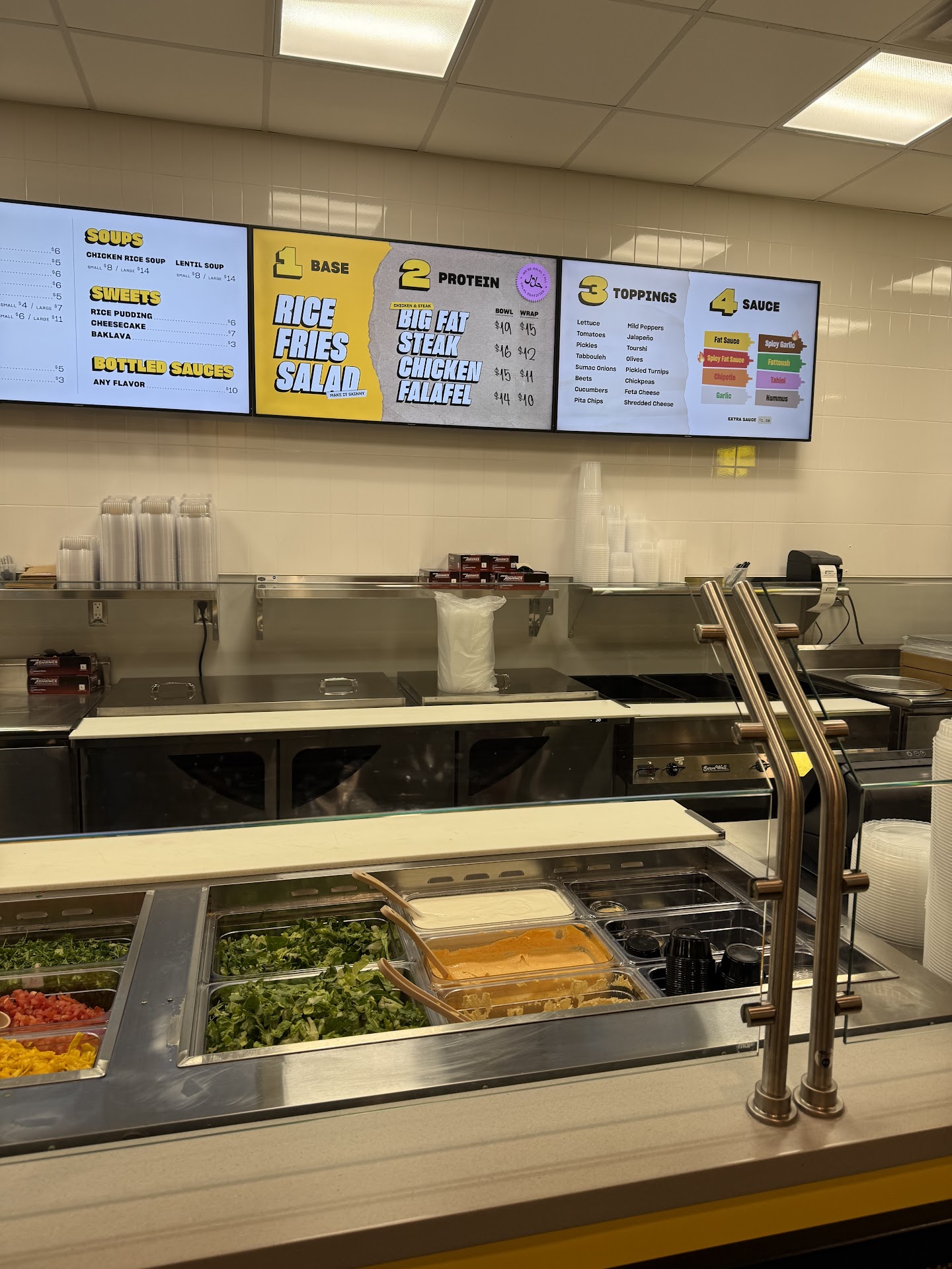 I went in for a quick meal and walked out with a feast! Generous portions are definitely served up without hesitation. The staff was friendly, fast, and greeted me when I walked in the door! Fill your bowl with freshly made yellow rice, chicken, spicy garlic sauce, extra cucumbers, extra tomatoes, onions,spicy Fat sauce AND YOU WILL BE IN HEAVEN!! This is the place you’re looking for! You won’t be disappointed! And carry your bag with two hands cause the bowls are loaded!