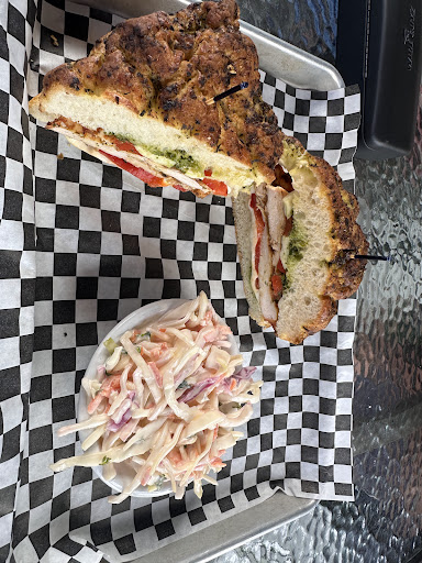 Ā Ā Ā Read moreOur friends brought us here for dinner while we were down visiting from Maine. This place has a ton of parking, great set up, and nice location. It actually reminded me of Captain Newickās location back in the day when it was still around. It was kinda nice to see. It was loud and packed inside so we opted to sit out on the back deck which turned out great as no one was out there. We got seated no problem, our waitress was nice, funny and fast. I had the pesto chicken sandwich with a side of coleslaw and my husband had the grilled chicken wrap. Mine came on freshly made focaccia bread which was to die for. The sandwich was huge and I had to take small bites, but the flavors were spot on. Not too much pesto, chicken was cooked perfectly. His wrap was just as good with juicy chicken and fresh veg. I wasnāt a fan of the coleslaw, it was mostly mayo based and Iām more of a vinegar based kinda gal. I like my coleslaw with a bite. Our friendās dishes looked really good and they had no complaints about their meals as well. I really enjoyed it overall and plan on returning next...
