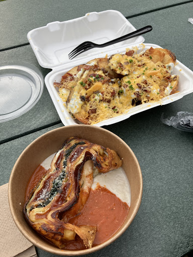 Read moreEvery bite of every meal I’ve ever gotten from here has me exclaiming, “this is SO good!!!!” Today my spouse and I had the garlic wedge fries w/ sambal aioli (perfectly spiced by the way) and the green pea falafel (somehow so much more moist and decadent than any other falafel I’ve ever had and the flatbread……she’s perfect), but the real star of the show were the orange ricotta donuts with blueberry sugar. Those donuts are the DEFINITION of succulent! They melt away into such beautiful fruit flavors all while being wonderfully crispy on the outside…I digress. Y’all need to go here! It is imperative! A need!!!! We’ve never been disappointed. These folks clearly love food and flavor...