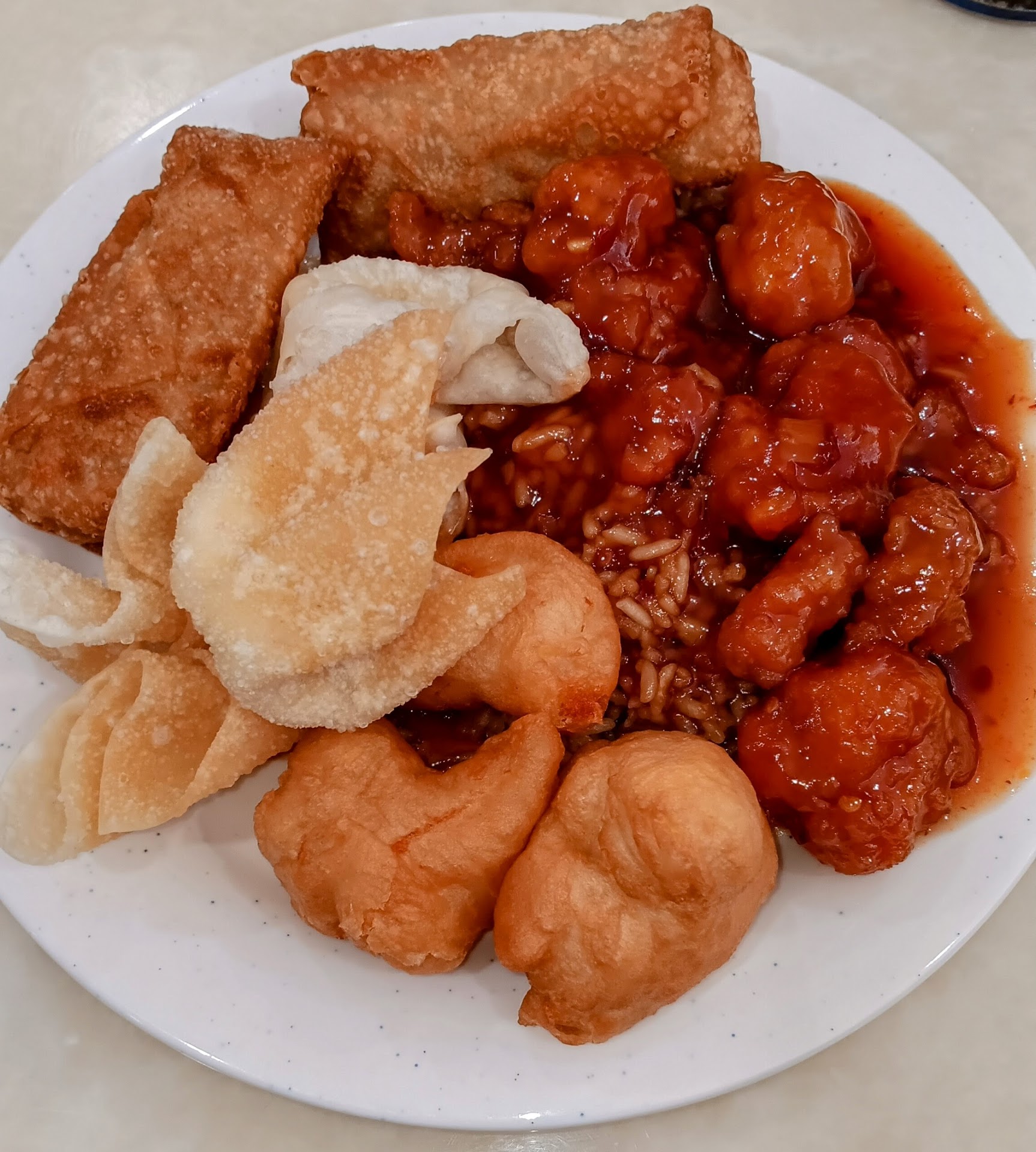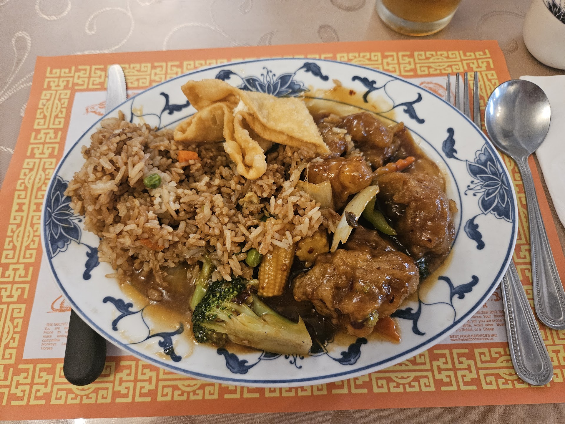 The fried rice was actually white rice with soy sauce and 5 whole peas. The chicken was so over cooked I repackaged it and sold it as jerky. The white rice tasted as if it was microwaved before they handed it to me. The crab meat ragoons were chewy and the chow mein was the worst of it all. THE CHOW MEIN WAS NOT CHOW MEIN!! It was a sad soup of boiled pork and stringy veggies, with literally no noodles Which they had the nerve to tell me that is the way Chow mein is made everywhere, here's a hint, it's not.
