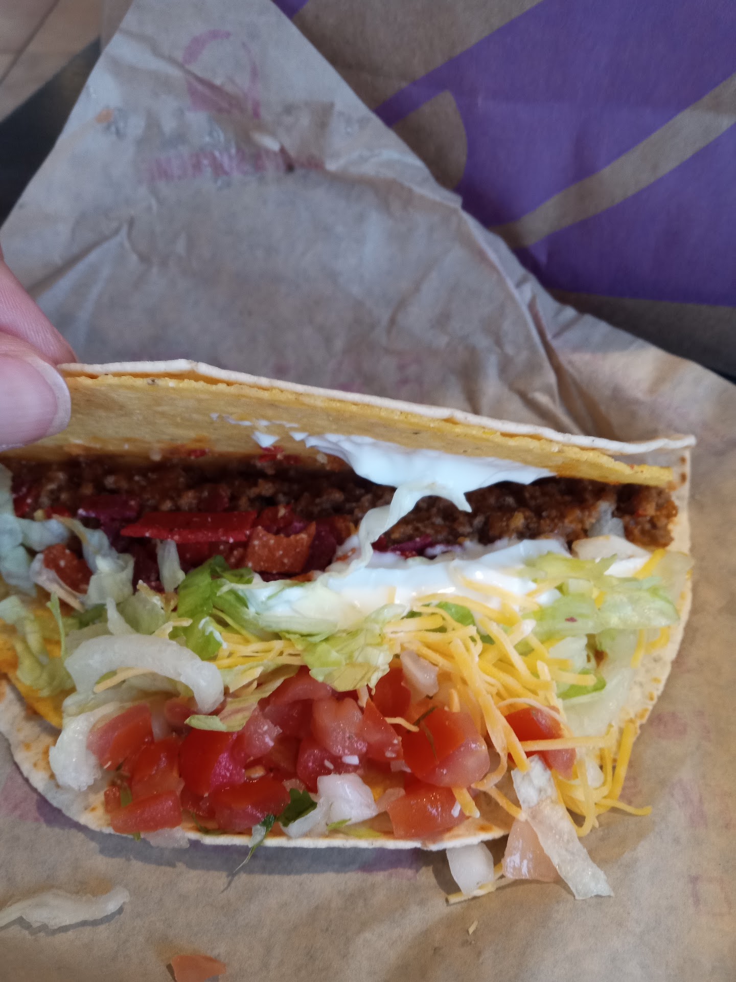 Read moreMy experience here was outrageous! First off I had been waiting at the counter for a minimum of 5 minutes if not longer just to get somebody to take my order. At least four different people looked at me before anybody came up to take it. Finally a person came up to take my order however this person at the counter argued with me about an item that they had (bean and cheese burrito) and I know that they have them because my boyfriend has been getting them for I don't even know how many years now and he had just gone earlier that week. He continued to argue with me; I had to call my boyfriend make sure that this was exactly what he wanted and he said that it was. I finally convinced him to take a beefy cheese burrito and just replace the beef with beans and take the sauce out and rice out. Then I went to make my order and he said that it wasn't possible to make mine even though they had everything to make it. He said you could only get it if you ordered it through the app which was not working at the time so there was no way for me to order what I wanted even though you could buy all the things separately. I didn't get back out to the car with my boyfriend until roughly 20 minutes later. After all that at least they got my order right but then whenever I went home to eat it my two crunchy tacos were so greasy that they had fallen apart and you couldn't even hold them! I understand that this is fast food and I don't expect it to be the greatest quality but I do expect it to at least be edible and this was not.
