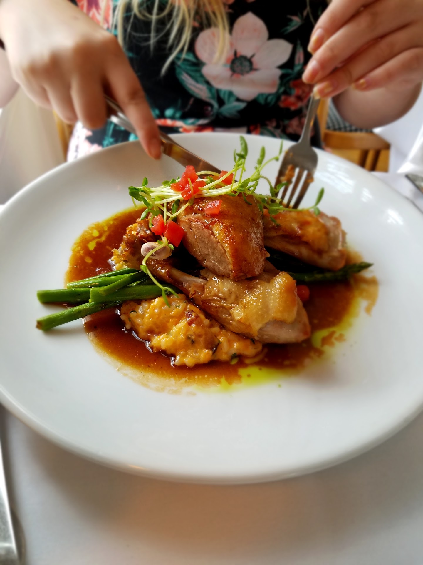 Once we finished dessert, we were chatting and finishing up our drinks. Not more than 5 minutes after finishing dessert, we were strongly encouraged to finish our drinks on the porch. I understand trying to get as many customers in as you can, but there's also something to be said about allowing your customers to enjoy themselves. We weren't trying to stretch out the night or sit there until closing, but I feel as if we shouldn't have been pressured to leave before we finished out glasses of wine.
