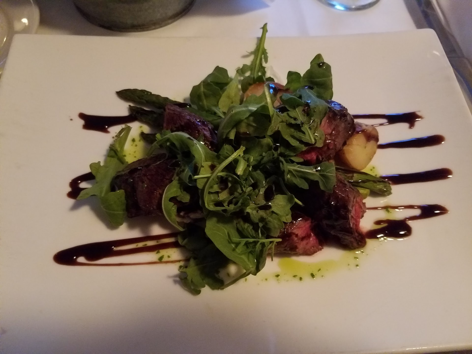 The dessert sounded awesome (“It’s a Rocky Road” - Chocolate ganache, chocolate covered peanut butter pretzels, candied peanuts & marshmallows), but it was such a letdown. It was less than a handful of items strewn across the plate. It just seemed like they had these items and rather than making something creative from them, they just tossed them across the plate.