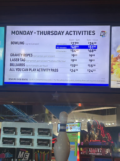 Read moreWe came here to celebrate our kid's doing well in school for the quarter and it was a massive let down. We walked over to the "restaurant" area to see a sign that said, "Please go to the front bowling desk to be seated in the restaurant." After waiting in line for 30 minutes, the bowling desk told us that we could just seat ourselves. The restaurant area had 0 clean tables, and I ended up having to clean off one of the tables with my hand because I could not find any restaurant workers and there were not any napkins anywhere. We had to put our order in with the bartender, who was extremely friendly, but this took a while as well as he was the only bartender/server for 50+ people. Furthermore, you have to pay at the time you place your order which is crazy because that is also the time you usually include your tip. How can you add a tip for service when you have no idea how good, or in our case, how bad your service is? I had to take our drinks to our table and when our food arrived, they brought no silverware or napkins and never checked on us again. Once our food was delivered, whoever delivers the food just disappears, so you are left with the busy bartender as the only person who can help you. We were hoping the games, gravity zone and laser tag would make up for the dining issue, but the first 5 games we tried took our tokens and did not work. There are a lot of details they fail to tell you, like gravity zone and laser tag are only at certain times. We were able to get our refund for the laser tag as it was not working at the time we originally paid for it. The atmosphere in the place is sketchy at best. Near the end of our trip there was a large group of people in the business that reeked of weed. I was watching my son play a claw game for tickets and noticed that a grown man ended standing next to him and started paying attention to where my son was placing his Main Event token card. I walked over to my son and asked him if he had any luck, and the guy gave me a look and immediately walked away. Based off of this guy's behavior, I can only assume he was hoping my son would put the card on the machine so he could take it by his reaction. This is a great idea for a business, but it is severely understaffed. When a game does not work, you cannot find anyone to assist you. The restaurant is service awful at best. The burger was good, but the fries tasted funky. There was a massive piles of dirty bowling shoes on the counters as well. I am not sure if this place is severely understaffed or if they just don't care. What was supposed to be a fun afternoon out for a celebration ended up not being so with us apologizing to our kids for the let down.