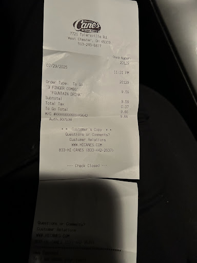 Read moreI was really excited to try it.. went inside and the line was to the door so I tried the drive-thru instead.. I ordered the Caniac combo which includes 6 chicken fingers, fries, toast, 2 Cane's Sauce, cole slaw and a large drink for around $10. My boyfriend and I split the combo , it was plenty of food for 2.. The chicken tasted a lot like KFC minus the grease. Fries were exactly like White Castle's.. I'm not a fan of cole slaw myself so it doesn't matter to me. The Coke we got had a weird aftertaste and we couldnt figure it out, so I traded it in for a Fanta Orange and the same aftertaste was there... it tasted like metal? We thought maybe it was because there are new pipes or something? I'm not too sure. But the toast was really good dipped in the Cane's Sauce, but the sauce just tasted like BBQ and Ranch mixed together. The wait was a little long, food was hot but bland. Workers were nice. I rather go to Chic Fila or...