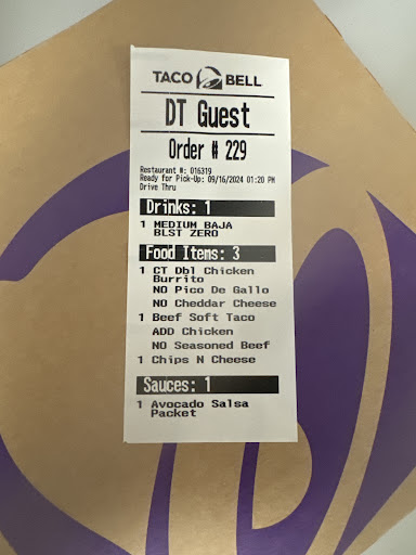 All I want is my $5 worth of food. So I brought back a bag full of food š®, and this lady started yelling at me because apparently someone named Mary ordered it. Not me. She realizes this and her odd behavior became even stranger... She then only took ONE burrito, ONE taco plus the receipt š§¾š§ of course (maybe so she wouldn't get in trouble)? But why wouldn't she take the rest of the food back? Or just remake my order... Why yell at me? All I wanted was the one bell grande I paid for. Did I add she also tried to switch the receipt š§¾š§