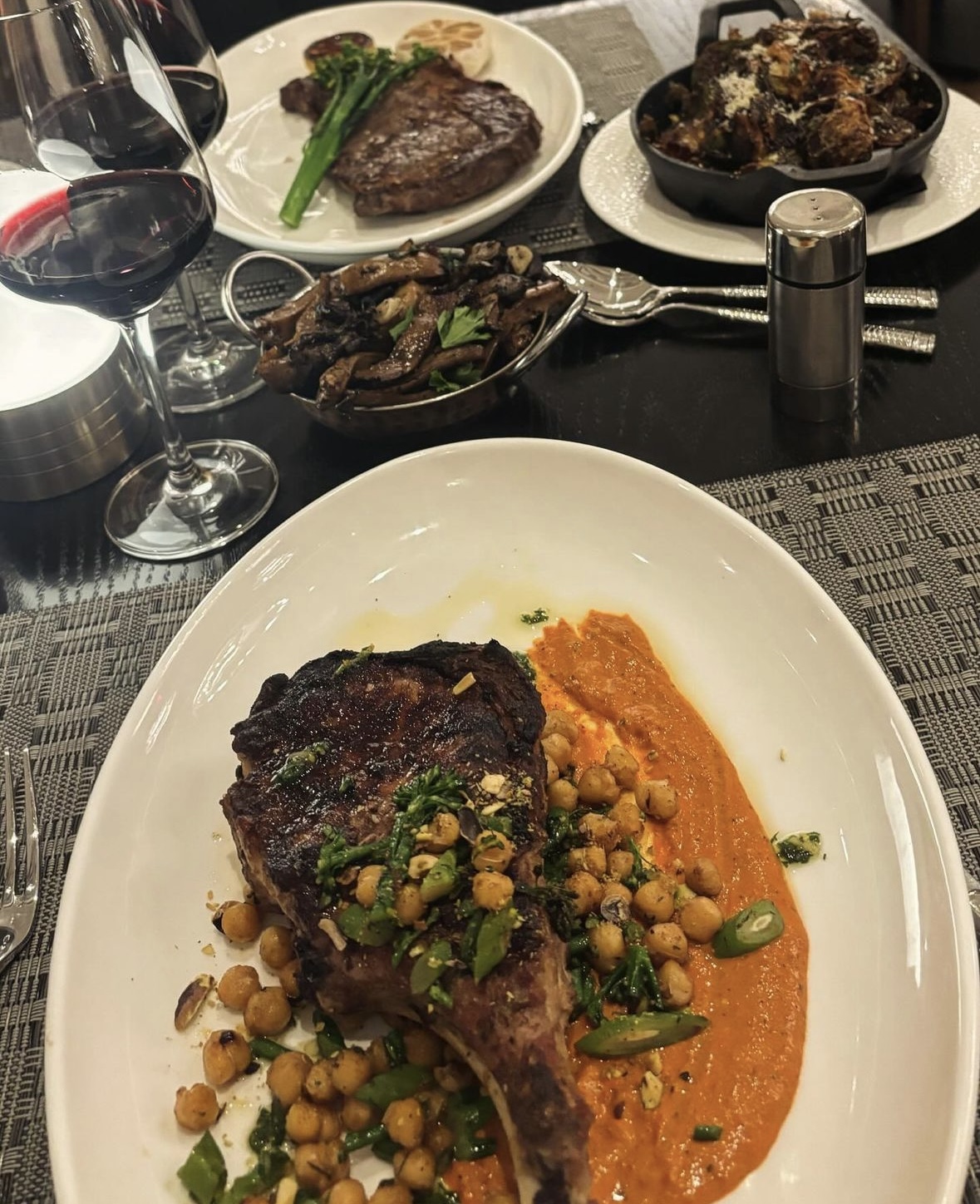 For dinner we all got nice steaks between $60-90 each and ordered several sides for the table. Food took another 40-50 minutes which was pretty annoying. I donât think we started eating until like 845ish? The brussel sprouts were insanely tasty, all the other sides were very mediocre and came out luke warm. We got the Brussels, mashed potatoes, lobster mac n cheese and truffle fries. Truffle fries were almost cold. The sides were very subpar to me, someone at the table liked the lobster mac but Iâve had much better. I wished it was warmer. The steak was extremely tasty- really enjoyed it. Everyone at the table enjoyed their steak, no complaints there. Also no bread for the table which I thought was weird. Iâve been to nice steak houses where they have amazing home made bread as a basic commodity.