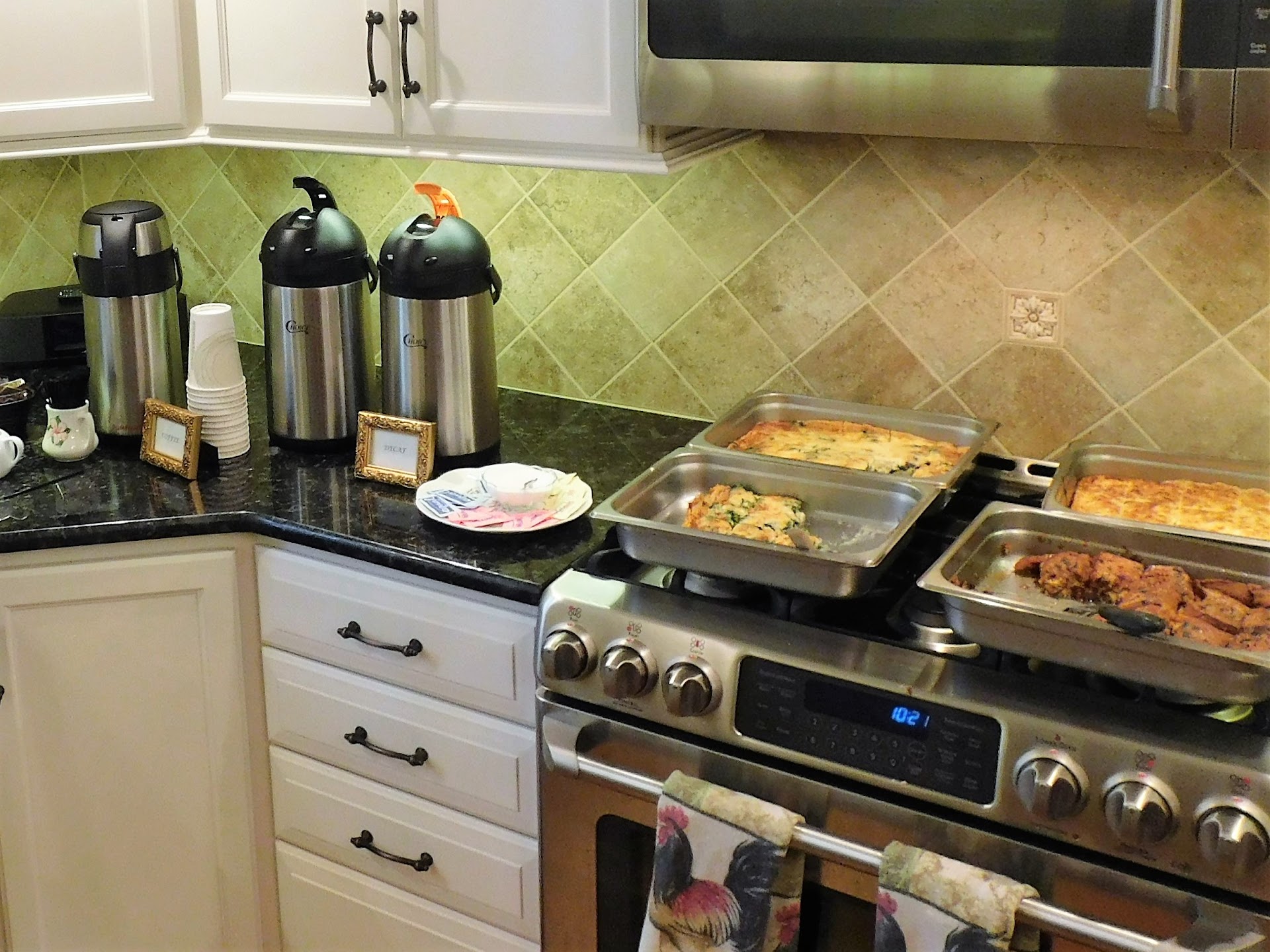 The Sanderson Museum in Chadds Ford has used Arianna's to cater our Volunteer Breakfast 3 years in a row now. But this was the first year we held it at a members house and it couldn't have been easier. All I had to do was make sure the house was clean and ready for 15 people. Everything and anything you could think of and more, was provided. Not only the plates, cups, napkins and tableware, but carafes of coffee, cream, real sugar, packets of sugar, high end tea bags, stirrers, and even beautiful labels for the coffee in gold frames! Each of the 4 quiches came with mini spatulas, and the bread and Danish, with mini tongs. Even the various potted butters and spreads (yummy) came in tiny cups with butter knives. Everything for the breakfast buffet fit around our kitchen counter perfectly, with room to spare. And did we mention it was delicious as always? Catering by Arianna's Cafe is a...