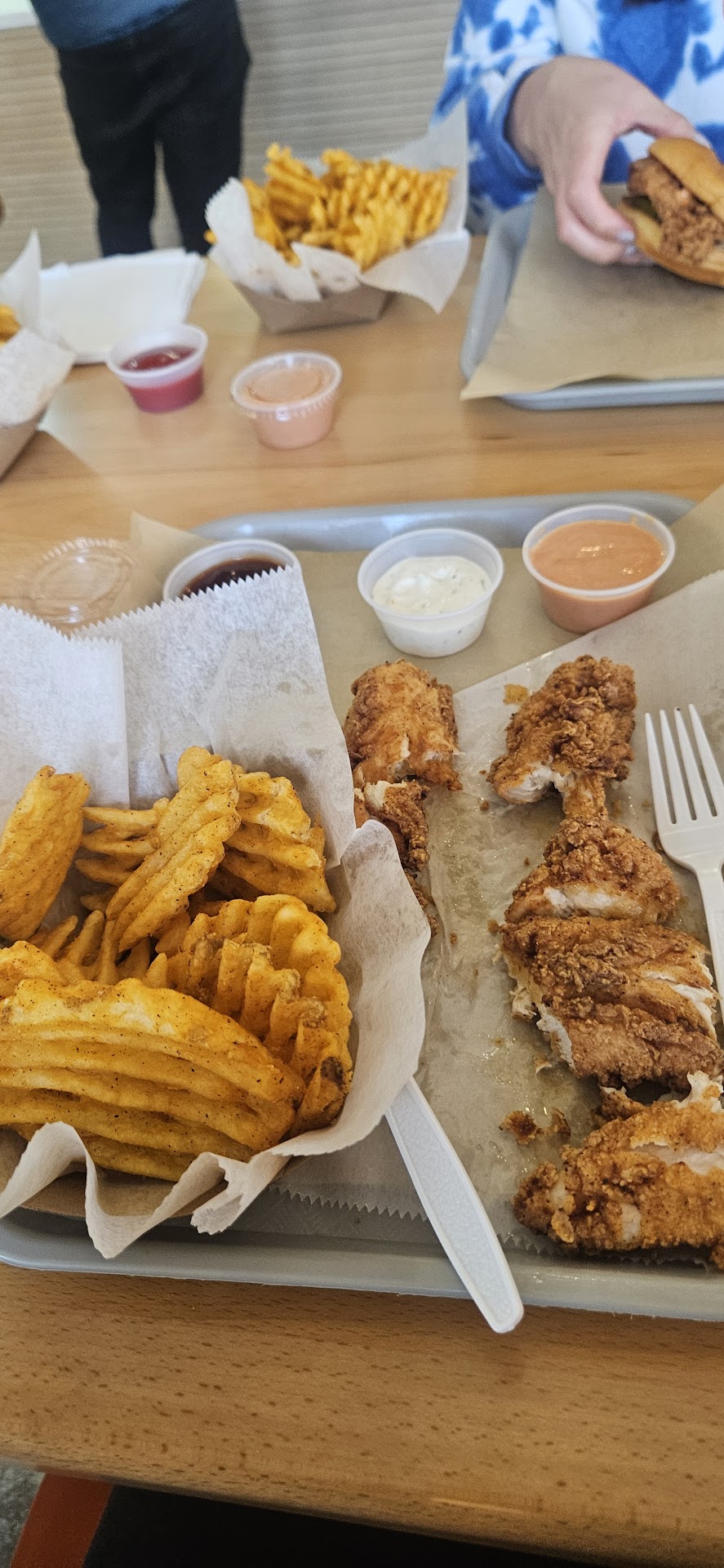 Ā Ā Ā Read moreThe chicken tenders were good. My son is the chicken tender connoisseur and gave them a passing grade. We tried 3 different fries - sweet potato waffle, waffle, and straight cut. We all agreed the waffle fries were best with my wife and I agreeing the sweet potato fries were the best overall and my son going with the regular waffle fries for the win. The regular straight cut fries were good but outclassed by the crispy goodness of the waffle fries. As could be expected, the only downside is this was all fried food but this outing was for fun, not health food. The staff was especially friendly and kind. The gentleman who is a junior at West Chester went out of his way at the end to ask my son if heās going to West Chester (he is; freshman) and took a moment to say he was happy going there and good luck. Really, it only takes small moments like this for people to make a difference. Good job hiring...
