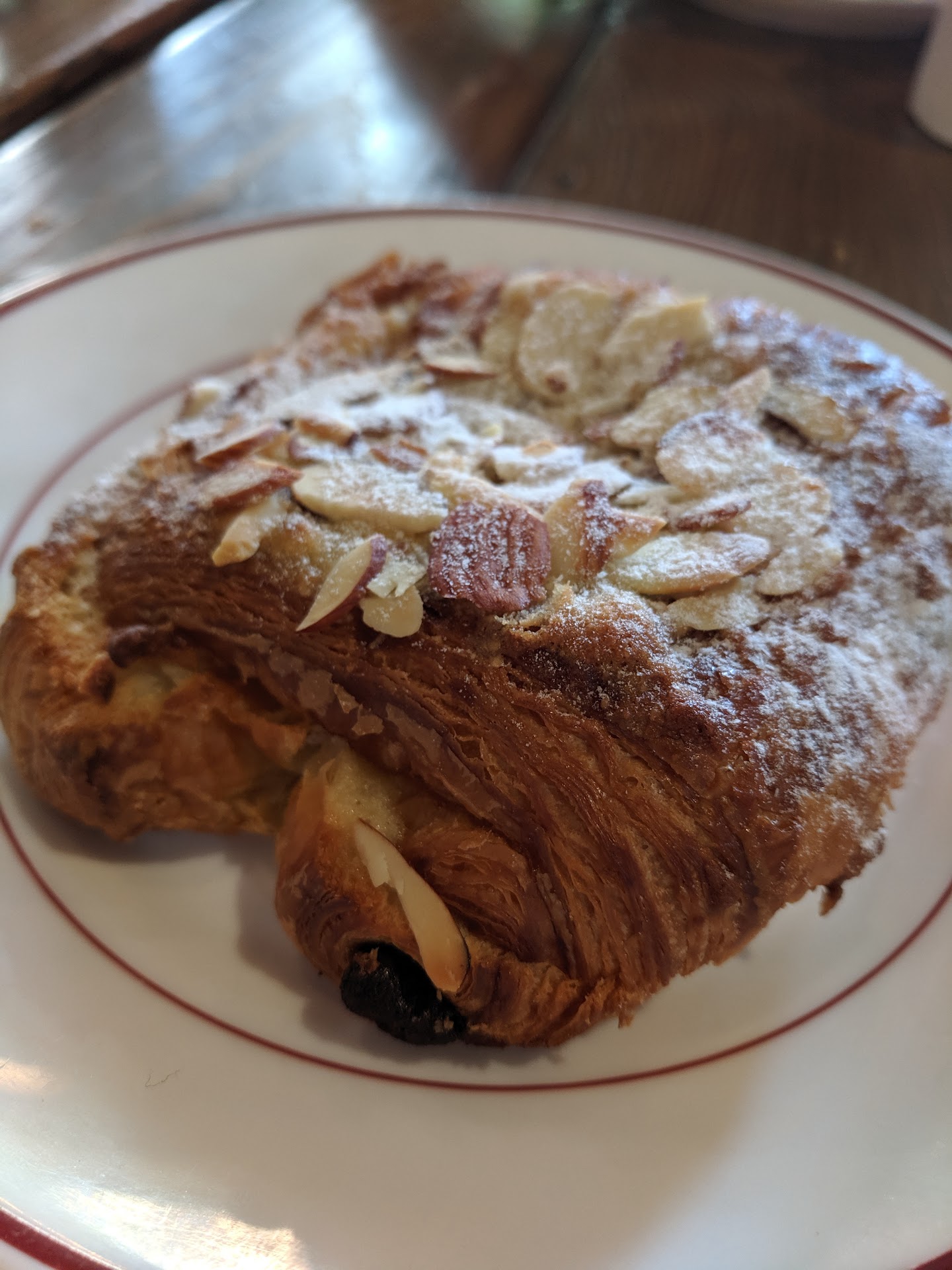There was a little of everything you could ever want! From Eclairs to the most amazing croissants! I was looking for more of a lunchtime meal so I ordered the Ham & cheese croissant. The crispy exterior would pass the knife test. The Swiss cheese and ham were nicely added in with a good bake! The buttery finish was amazing. I could not help but also order the chocolate croissant which was the French kiss of the whole experience! Absolutely delicious with the right amount of chocolate inside.