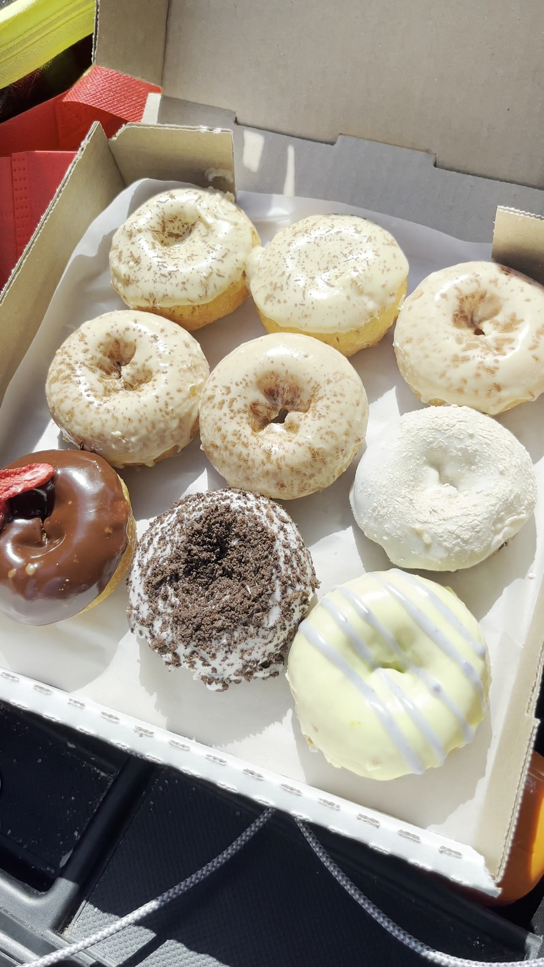 These doughnut were one of worst I have ever had. To start I questioned if they were even doughnuts because they looked like dog treats. I got one sea salt Carmel, biscoff, peanut butter lover, and chocolate covered strawberry. I will say the peanut butter lover was ok but the rest were a disappointment. The sea salt “Caramel” had the slightest bit of caramel syrup on it, a better name for it should have been sea salt doughnut cause that’s all that I could taste. The biscoff one tasted nothing like biscoff an had 1/100th of a biscoff cookie on it. In total it was $10 for 4 small doughnuts. It’s not worth the money better off going to the Amish and getting...