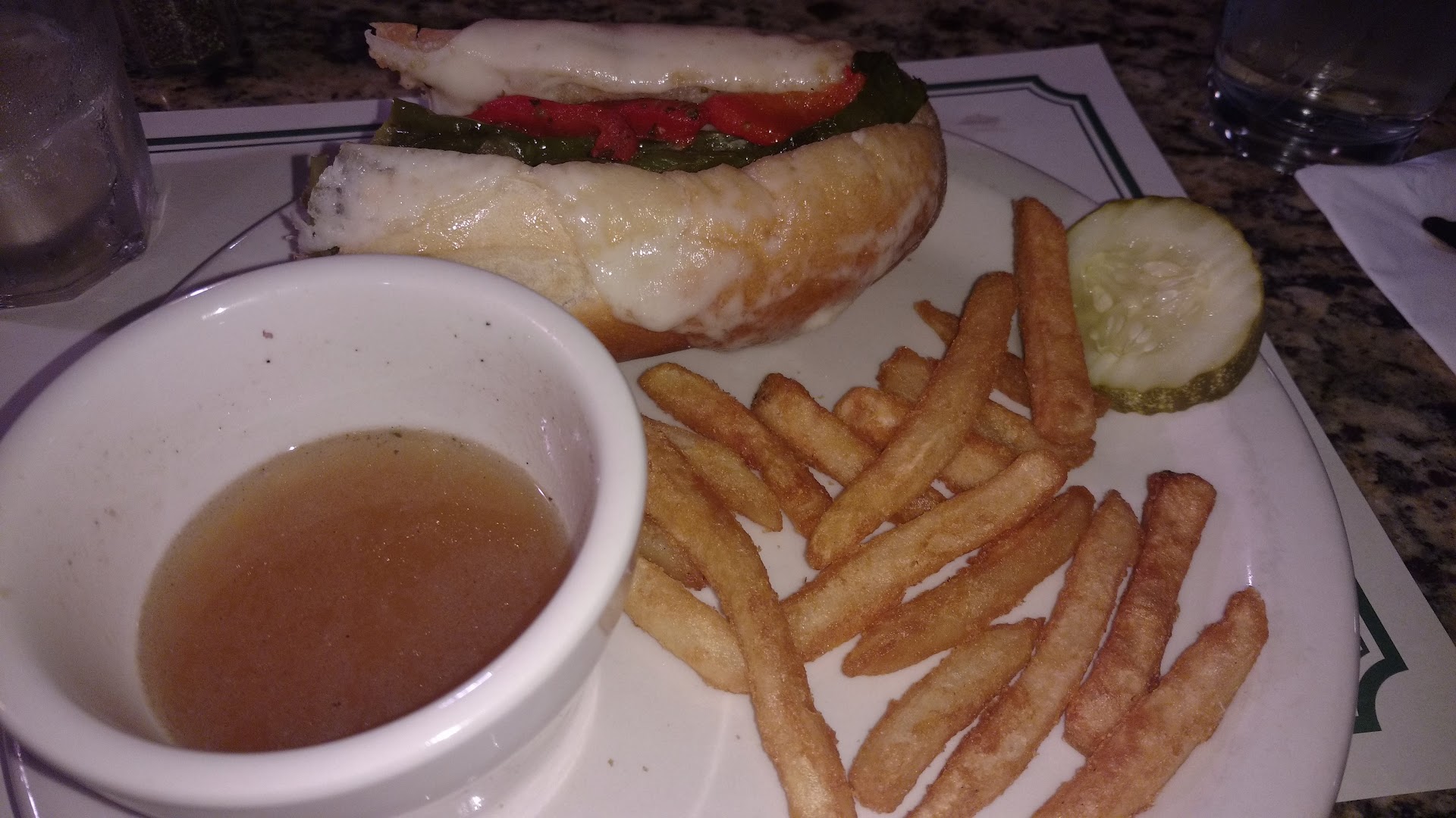 Local Irish pub with unexpected great food Ok not a glam shot of the Italian roast pork sandwich; but, after I took the first bite I realized I needed to write a review. Roast pork sandwich with red peppers, long shots and provolone complimented with warm au jus, French fries and a pickle. The perfect sandwich can only be had with an exquisitely warm and slightly toasted roll. Bam. Yeah, it had that. Appetizer I shared was the corned beef egg rolls, since we were torn over getting something corn beef, or Irish traditional, this was a compromise. Tasty, fried but not greasy app, just enough to whet your appetite. Wow. I really enjoyed these. The waitress was very sweet, helpful with our whiskey questions, even though she didn't know, cheerfully asked the bartender and reported back to us. Everything was wonderfully well done, highly recommend anyone in the charming area of West Chester, gay street, to...