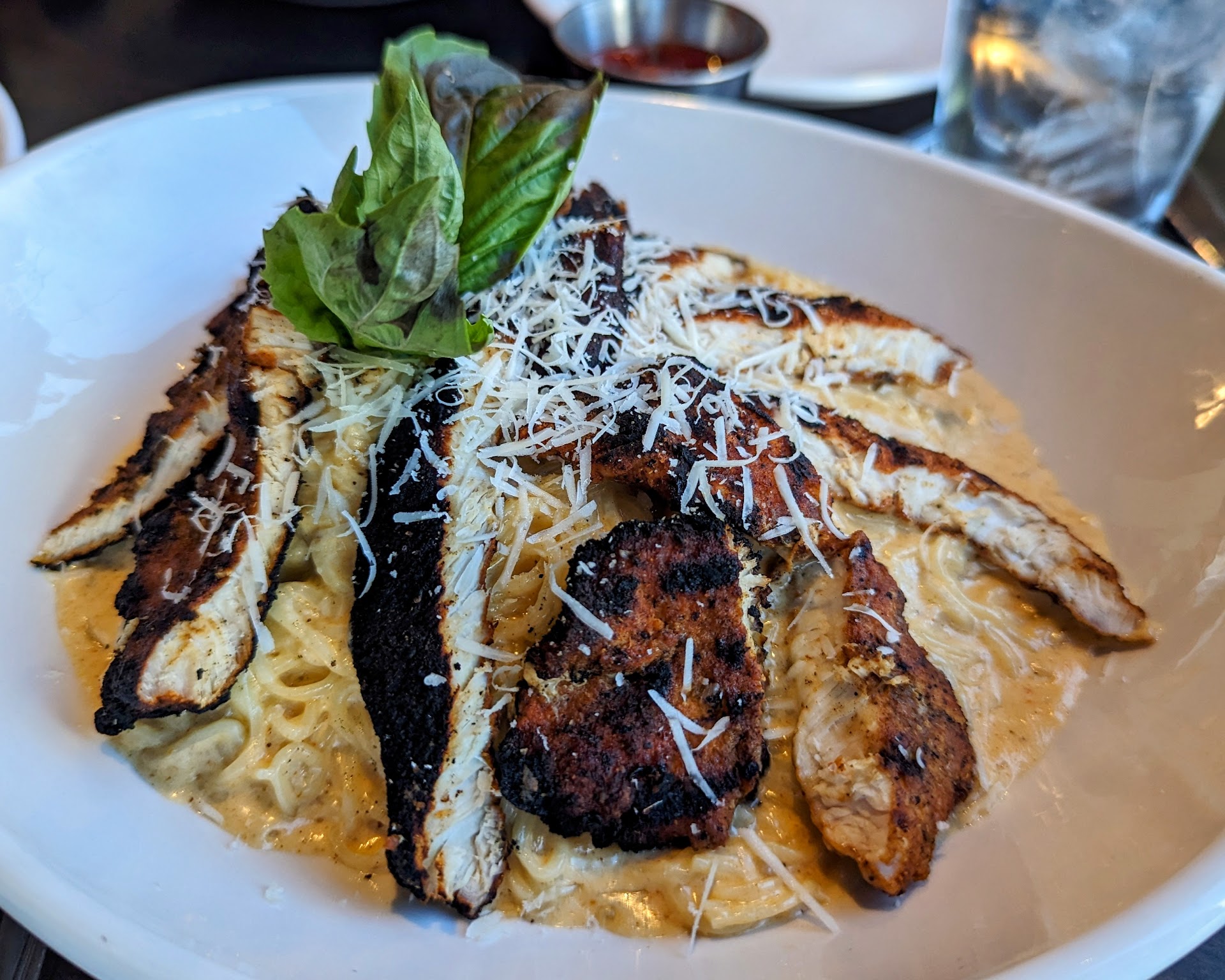 Read moreWe walked in at 6:30 on a Saturday night without a reservation, and were quoted an hour wait time. No problem, we went to Split Rail to have a drink. About 20 minutes later the host called me to say our table was ready. We had just gotten our drinks at Split Rail, so that was a little annoying b/c we had to chug them. We were seated, and waited quite a while for the waitress to greet us. Once she came by we asked her to tell us what exactly the crab gravy was, like was it a red sauce or white wine sauce, and she said multiple times "its crab gravy" without any further details. Not very helpful. The calamari appetizer came out quickly, but we waited about 40 minutes for our dinners. The waitress said we ordered in b/w two big parties. But she only mentioned it after coming by to fill our waters and she could tell we were wondering what was happening. She just wasn't very communicative. I had the seafood risotto, and for $32 I wasn't all that impressed. Flavor wise it was good, but the amount of seafood was definitely lacking. I couldn't really tell if there was crab meat or lobster, there were a handful of tiny scallops mixed it, and 4 large shrimp on top. My husband liked his shaved prime rib sandwich. My sister had the stuffed shrimp special and it looked good, and she was happy with it. I don't think we would return considering all the other...