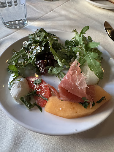 Appetizers are on the small side. Burrata is flown in from Italy. There’s a traditional with tomatoes and usually a special. Fantastic. Beet salad with arugula is light on beets. Pear salad was a special. Melon and prosciutto is a great combination and slightly larger appetizer.