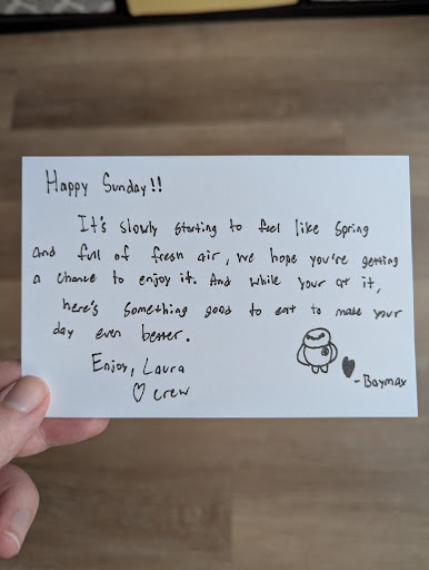 Read moreSaw this place on UberEats today and decided to try it out - when my order arrived, the very first thing I pulled out of the bag was this lovely handwritten note. What a great first impression! There's no way they could have possibly known this, but Baymax is one of my favorite characters...ever? It really boosted my mood and I genuinely want to thank whoever wrote that note and drew that tiny Baymax because it made my day :`)