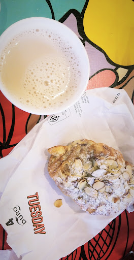 To pair with my drink, I ordered a chocolate croissant, and it was nothing short of delightful. The exterior was golden and flaky, with each bite releasing the perfect crunch before melting into buttery softness. Inside, the rich, slightly gooey chocolate filling was just the right amount, decadent but not overwhelming. The contrast between the crisp layers of pastry and the smooth chocolate was absolute perfection.