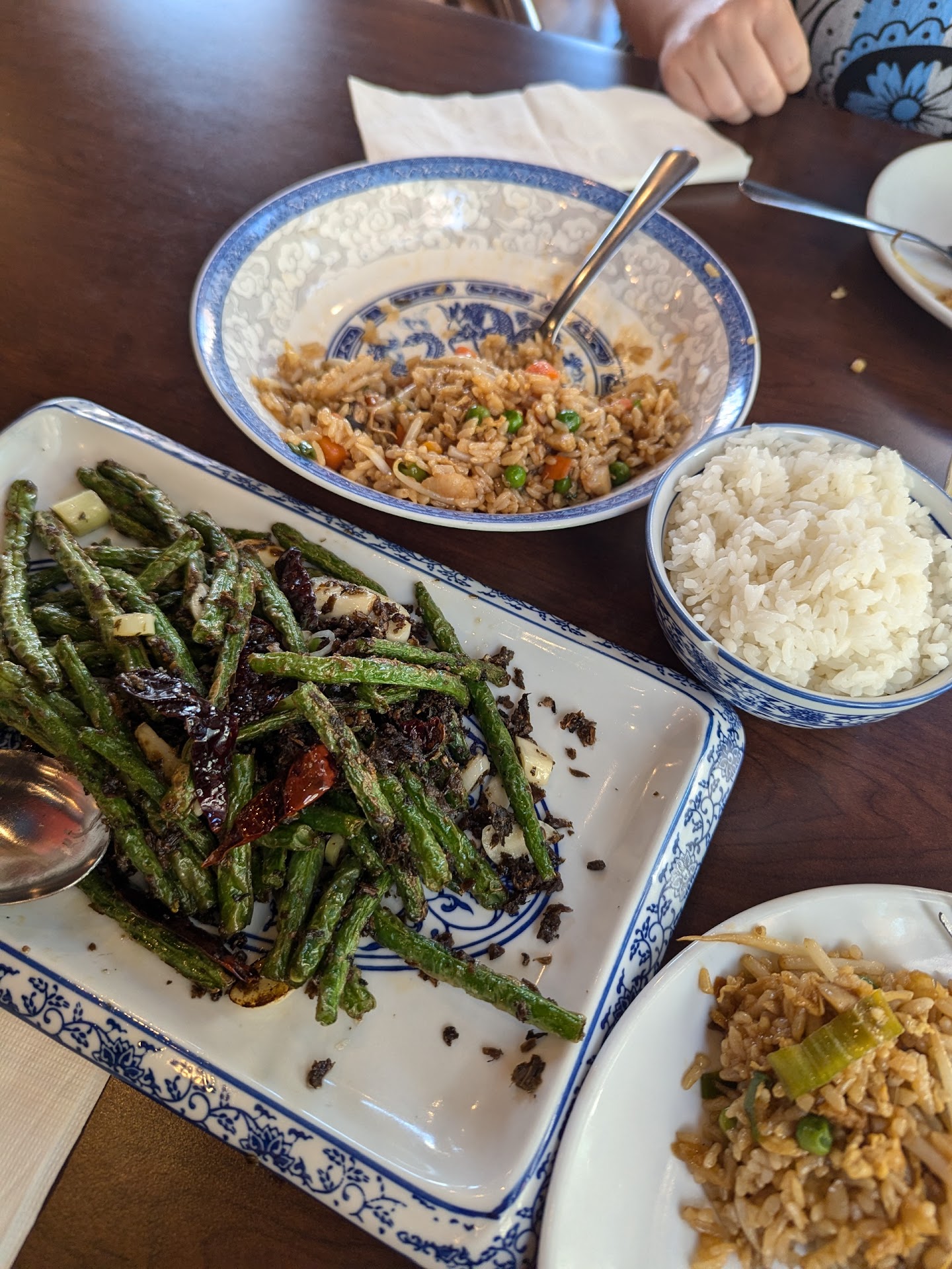 My very first visit I went and ordered Mapo Tofu with Beef 麻婆碎牛肉豆腐 and some hot and sour soup. I knew they would be spicy, but I was quite unprepared. The hot and sour had a nice zing and my water glass was in my hand more often than not. Luckily, they give you quite a large glass. By the time they got my main course out, I needed a refill and hadn't even finished the soup. Needless to say, since I was start to break a sweat over the hot and sour soup, the main course was easily 3x as spicy. Over the next 20 minutes, I'd hardly made a dent in the soup, but ate most of the rice and went through another glass of water. I believed I could finish it and water it down a bit at home, so I asked for a to-go box. They took my plates back and the server came back with a scoop of match mochi drizzled with some chocolate syrup. I hadn't ordered it, but he could really tell I struggled with trying to eat that. I must have looked quite pitiful haha. That was quite sweet of them and they didn't charge me for it. The second time I came back, I ordered the BEST Sichuan String Beans 干煸四季豆 and YuShiang Chicken 鱼香鸡.